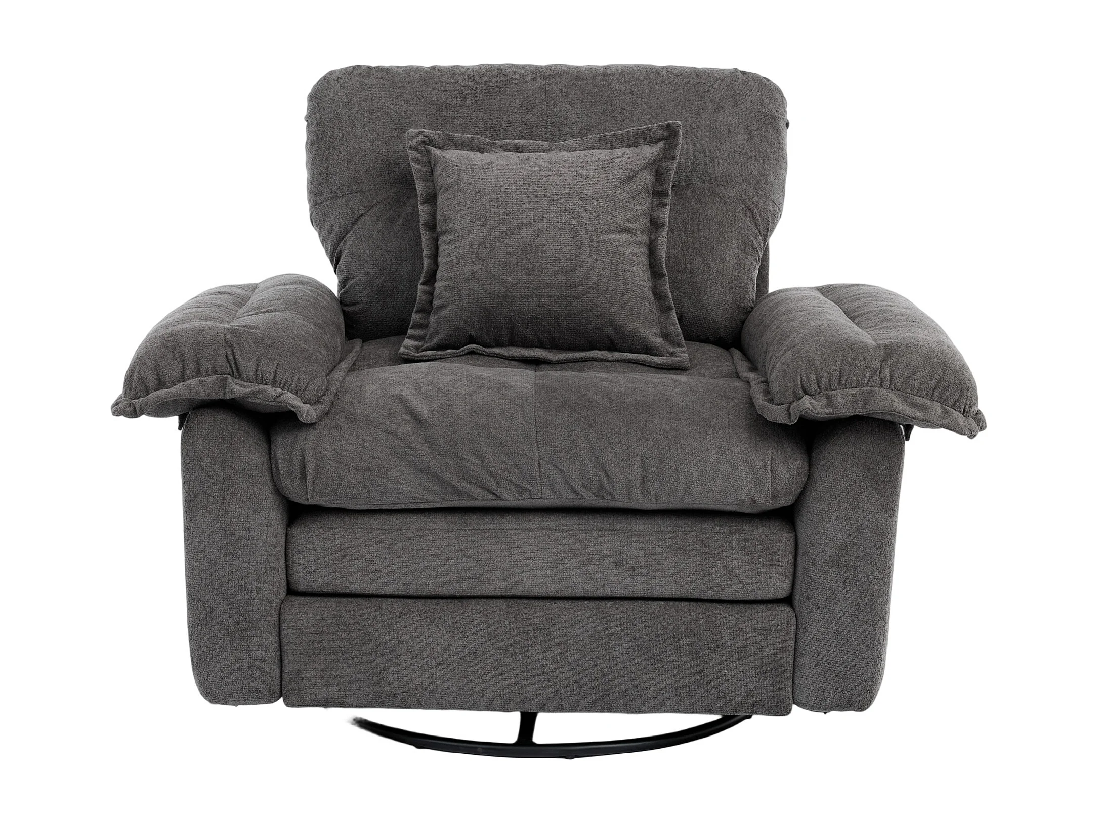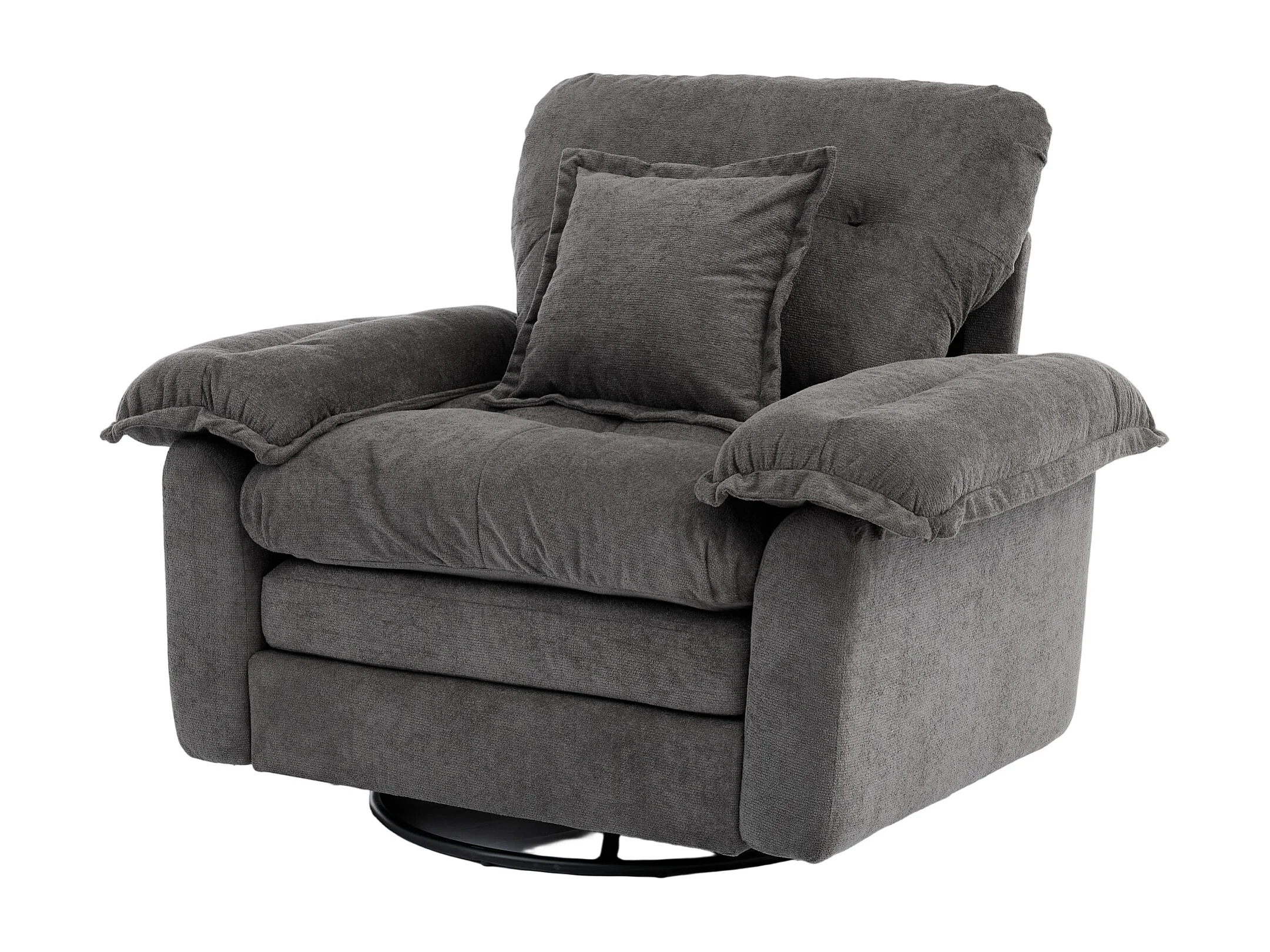 Fauteuil pivotant en tissu chenille gris avec coussin - Pour salon, chambre et bureau