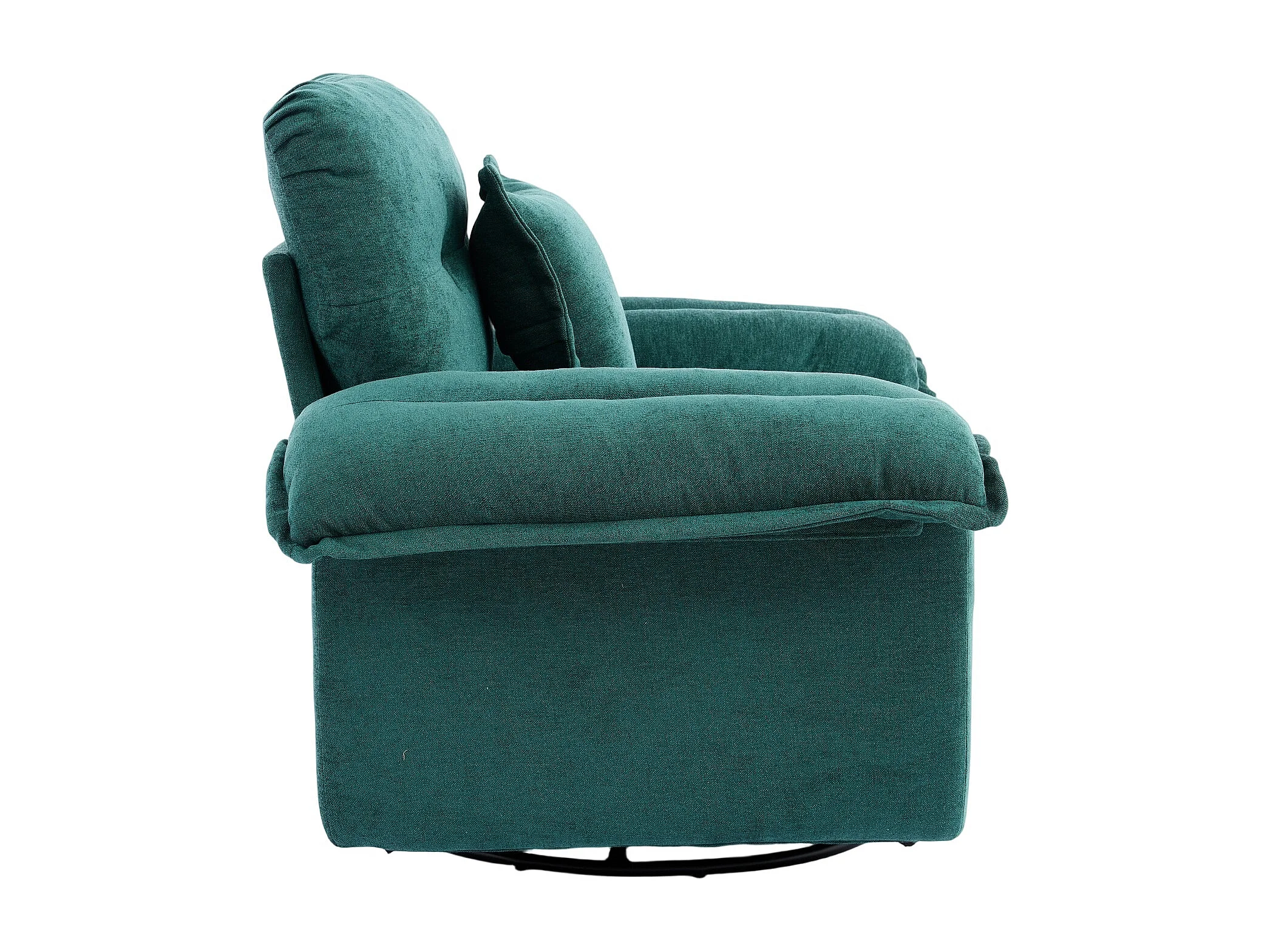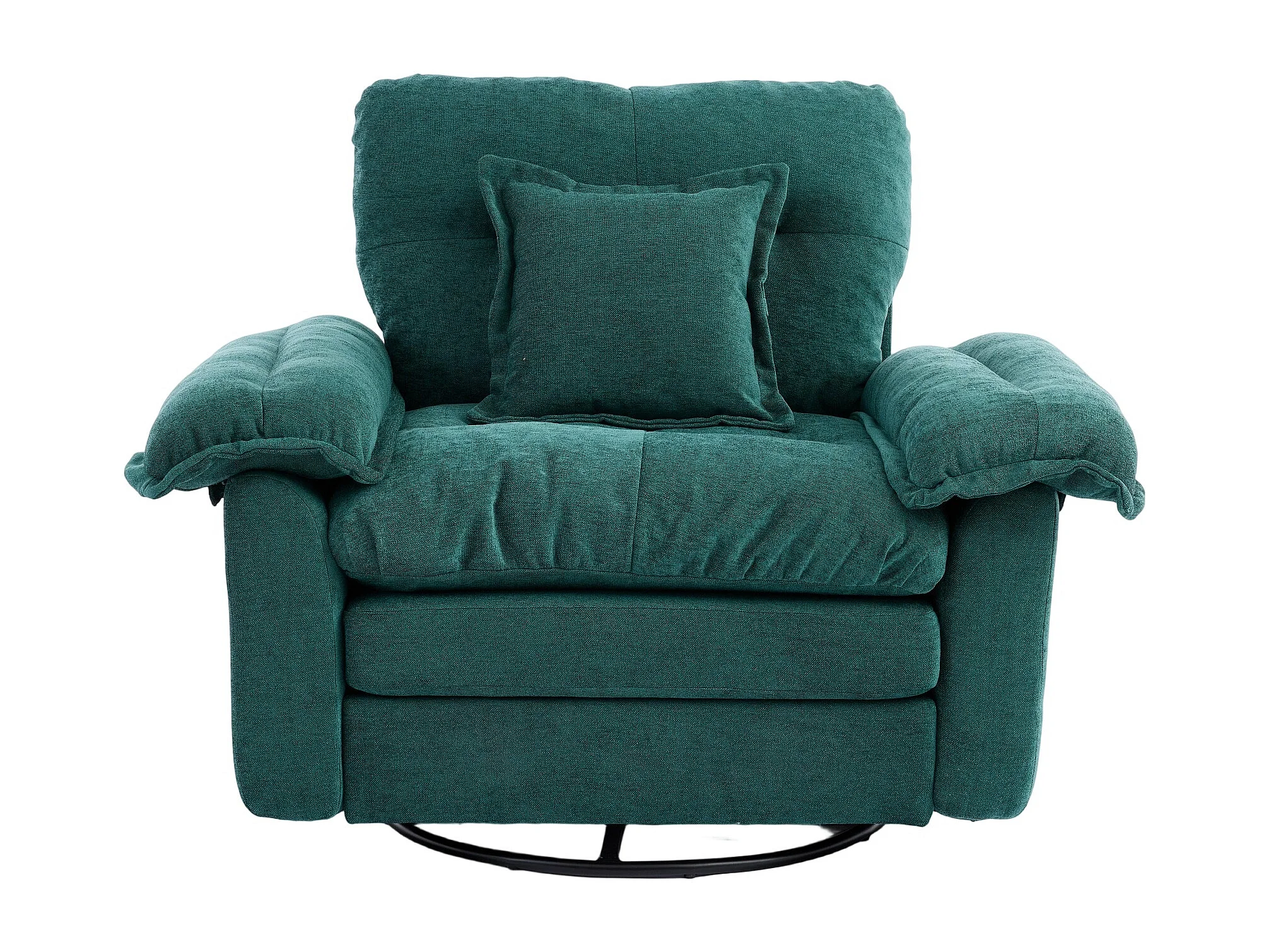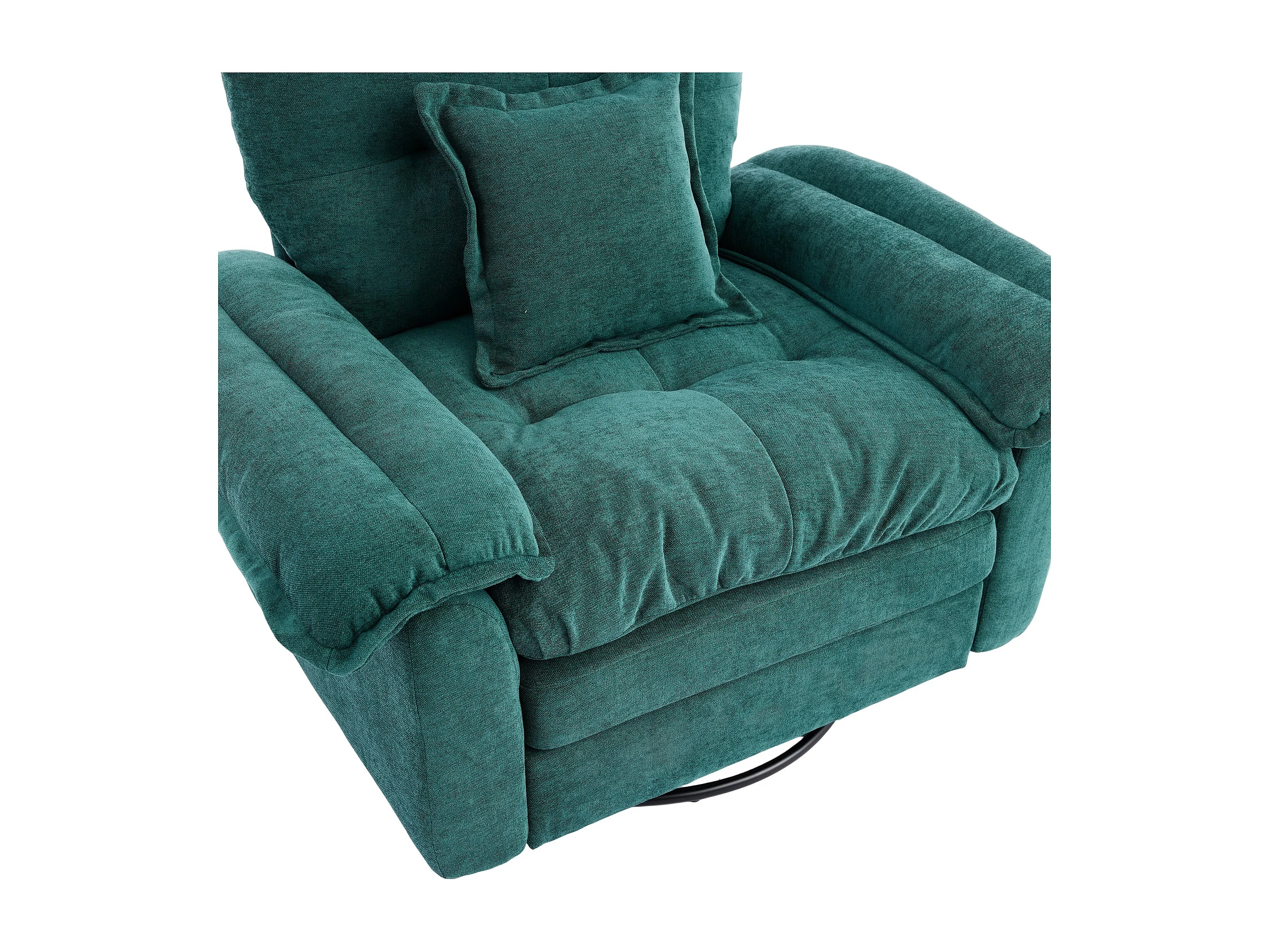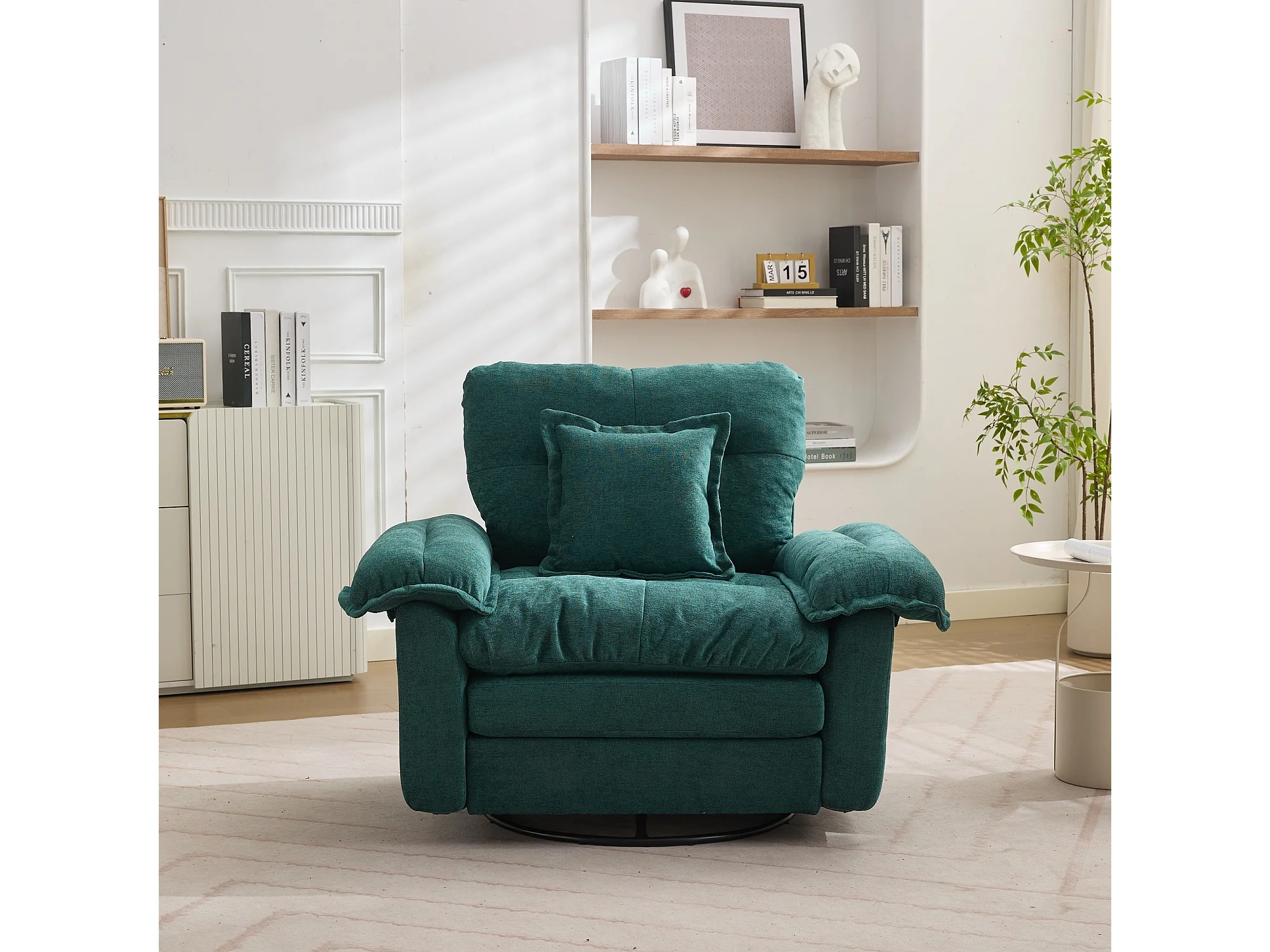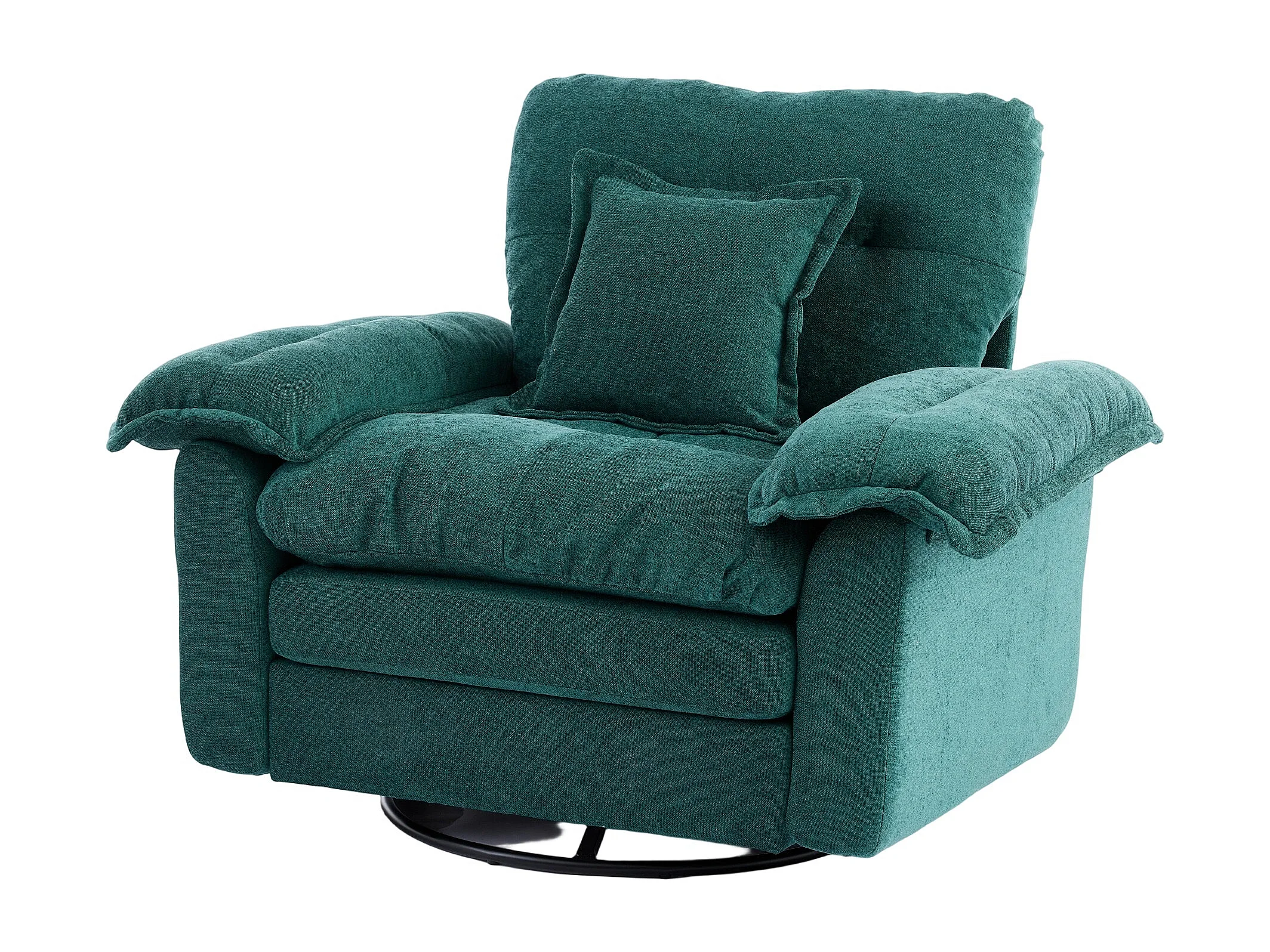 Fauteuil pivotant en tissu chenille vert avec coussin - Pour salon, chambre et bureau