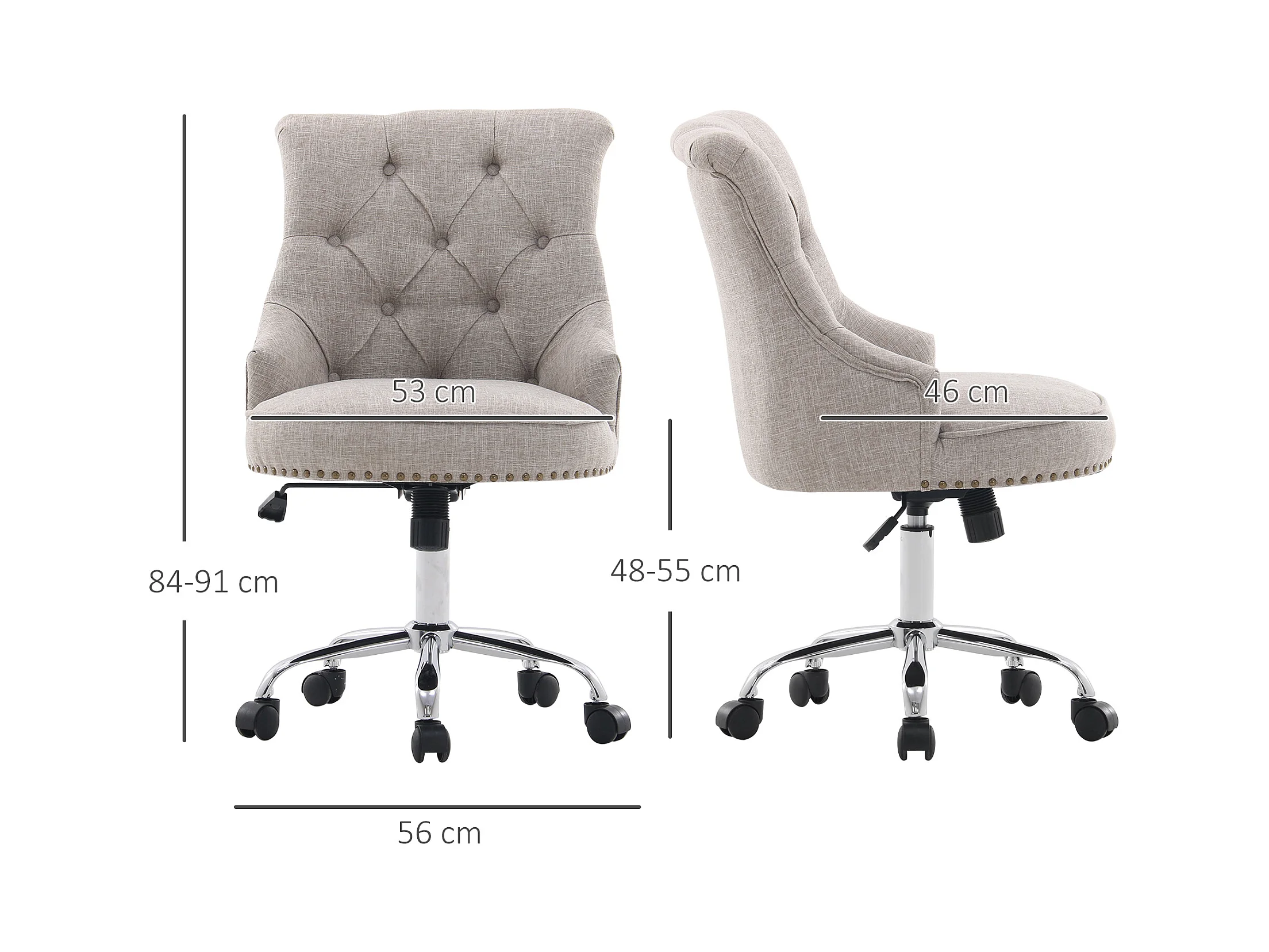 Fauteuil pivotant, ergonomique et rembourré, réglable en hauteur, design rétro, lin gris clair, supporte jusqu'à 150 kg, 54x65,5x84-91 cm
