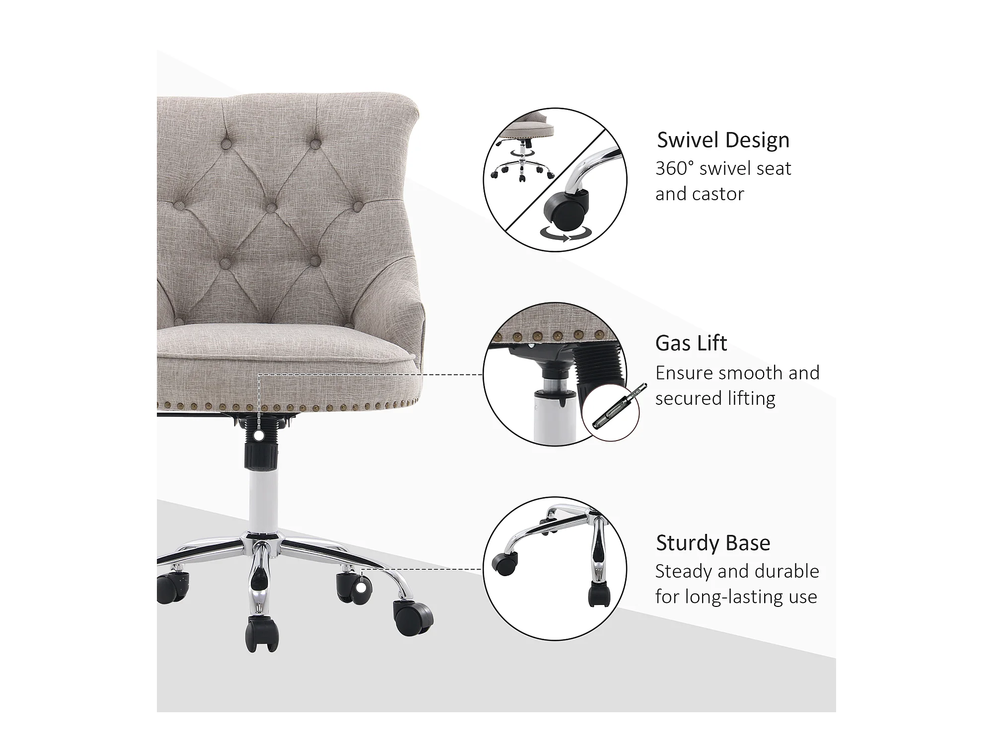 Chaise de bureau sans accoudoirs, pivotante et rembourrée, revêtement en tissu doux, réglable en hauteur, pieds en acier, couleur gris, confortable et pratique