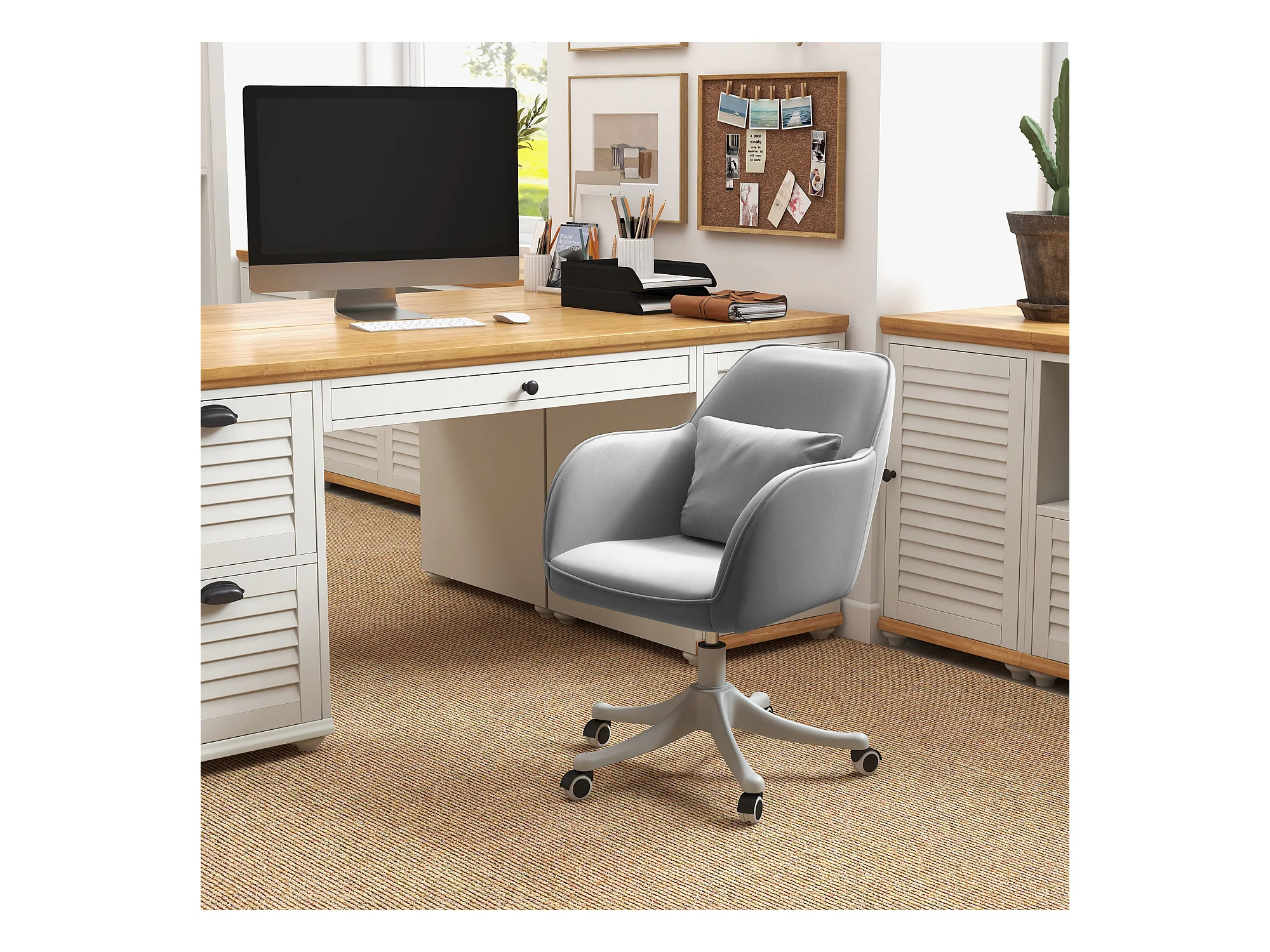 Fauteuil pivotant moderne, réglable en hauteur, avec accoudoirs, pour bureau ou salon, velours gris clair, supporte jusqu'à 120 kg