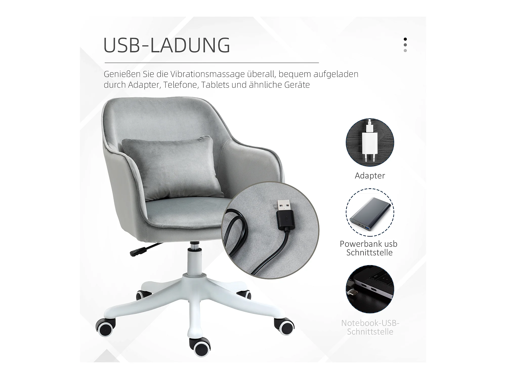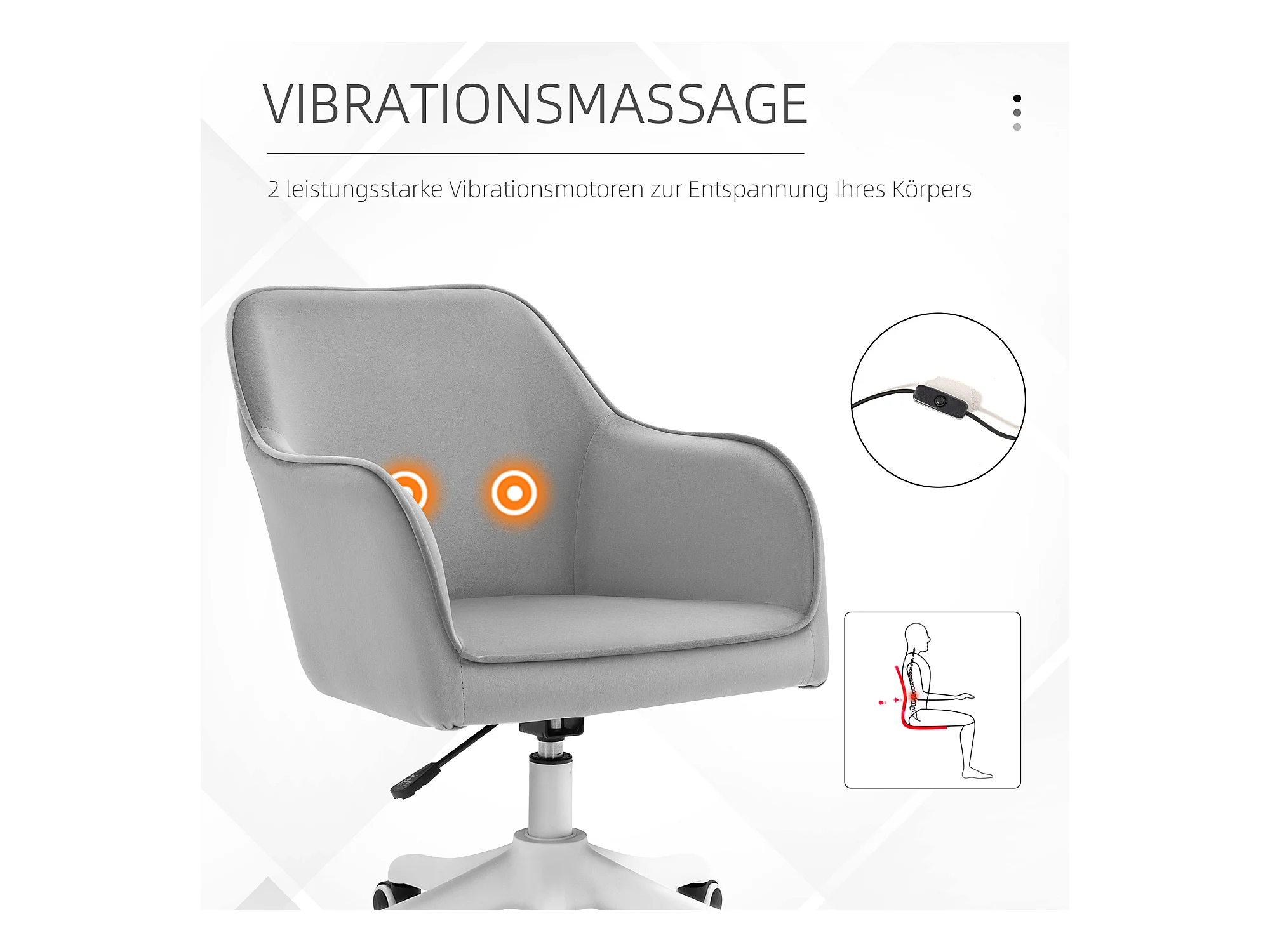 Fauteuil pivotant pour salon, fauteuil de bureau avec massage, chaise de bureau avec accoudoirs et coussin lombaire, gris, confort optimal