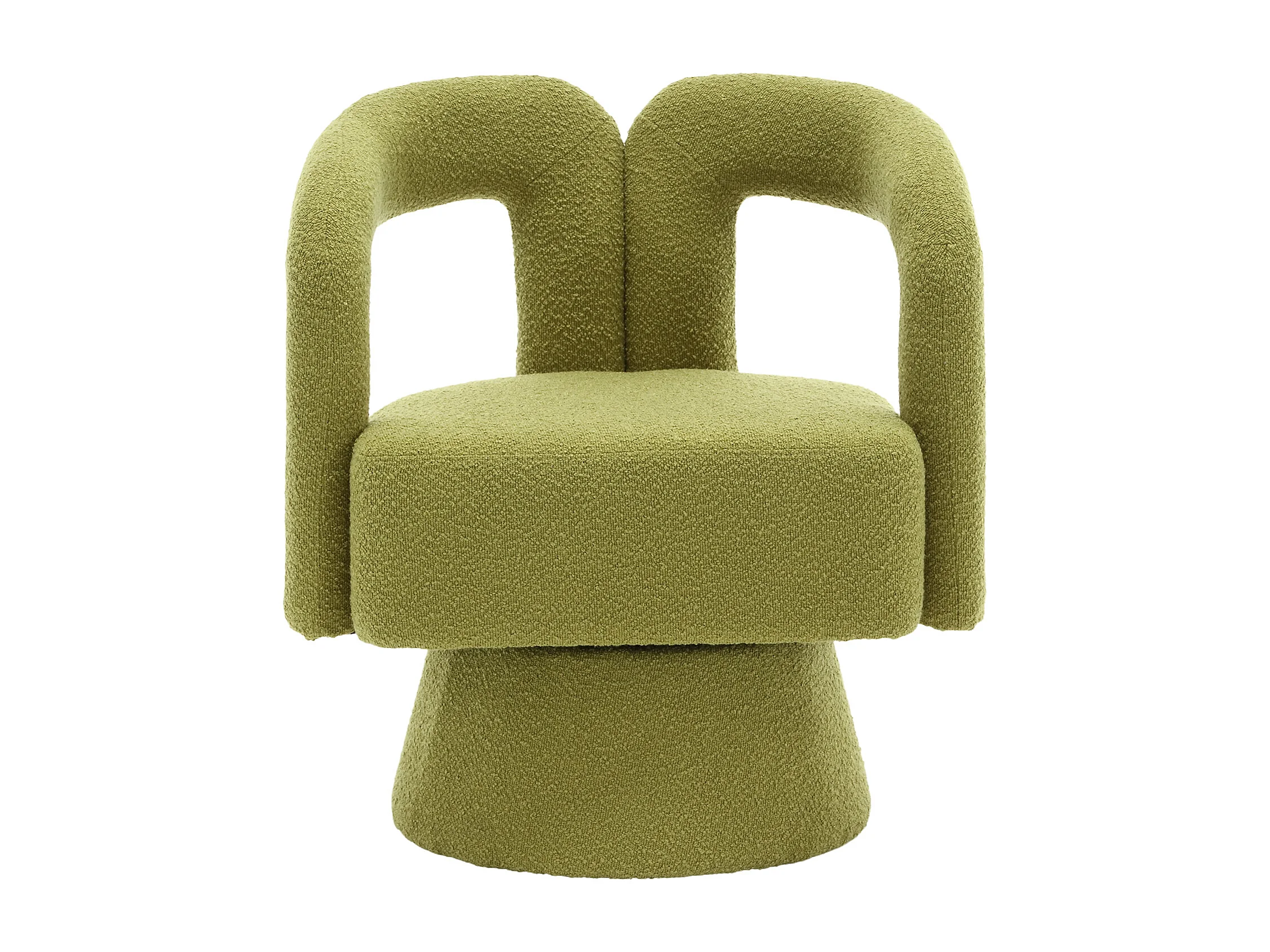 Fauteuil pivotant Tissu bouclé en forme de tonneau - Pour salon, chambre, bureau - Couleur olive