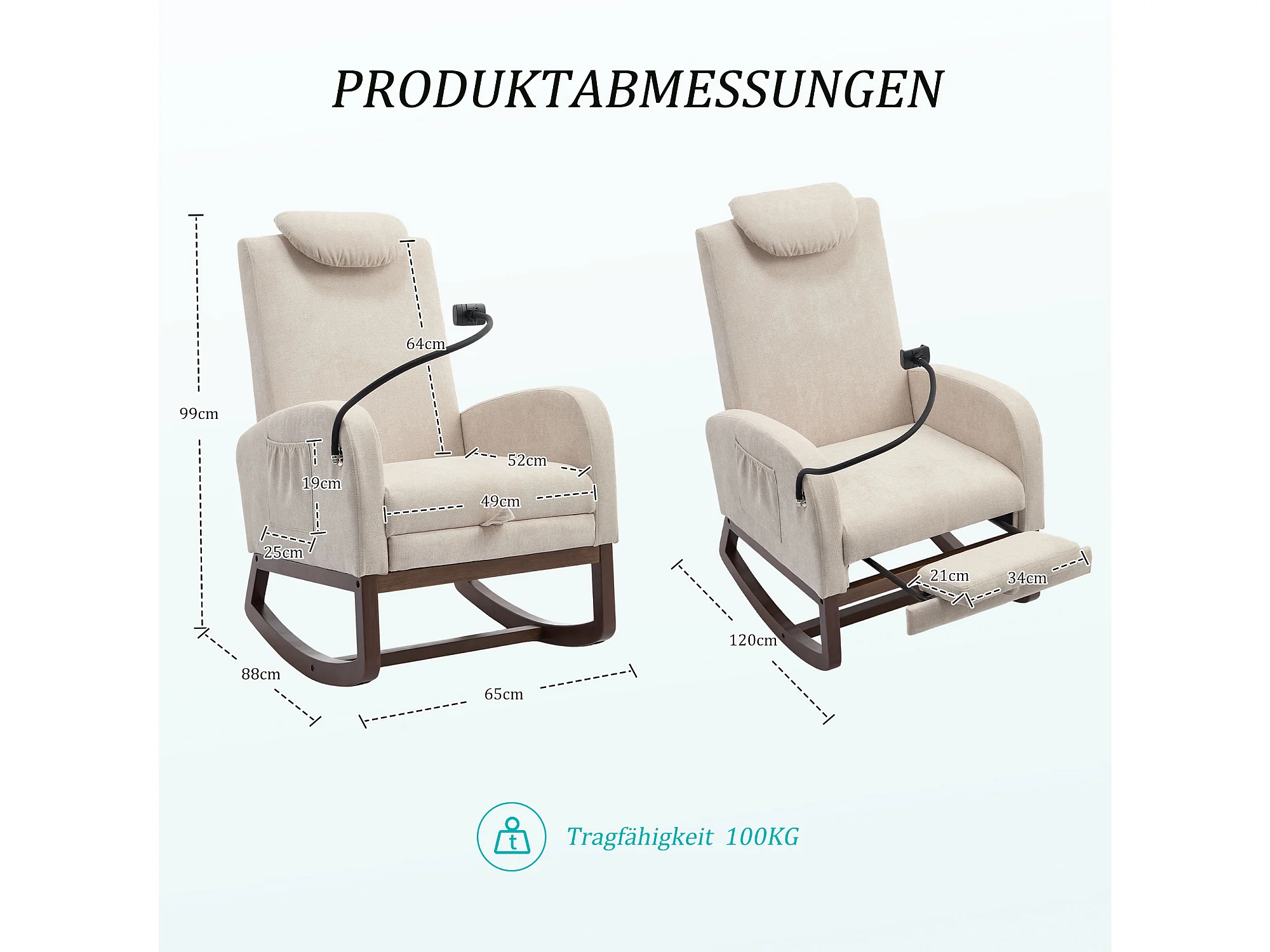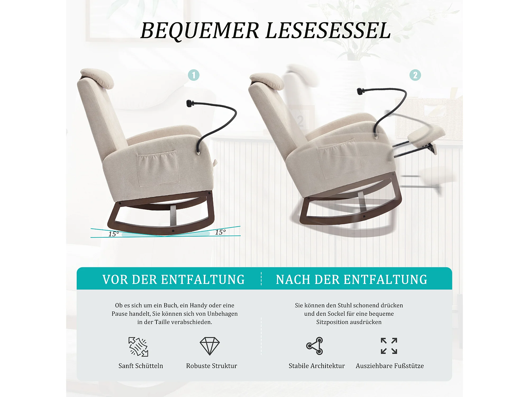 Fauteuil Relax à Bascule avec Repose-Pieds et Rangement Latéral - Confort Ergonomique en Lin - Idéal pour Salon, Bureau et Coin Lecture