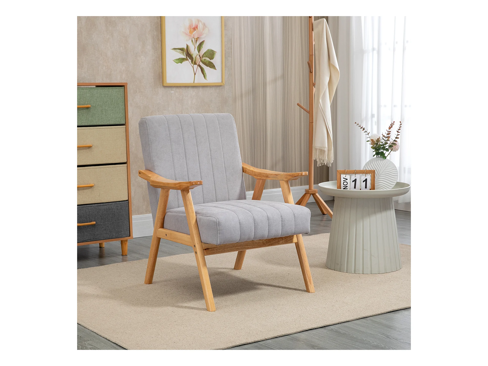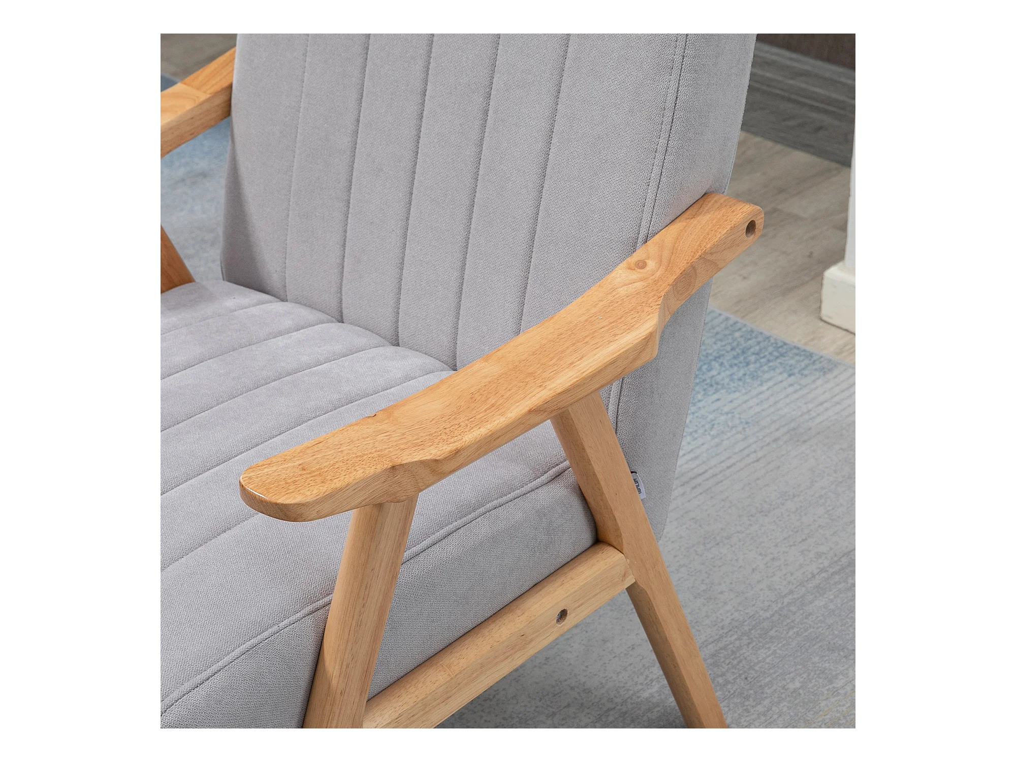 Fauteuil relax avec accoudoirs, design scandinave, bois de caoutchouc, microfibre, gris clair (68x74x82 cm)