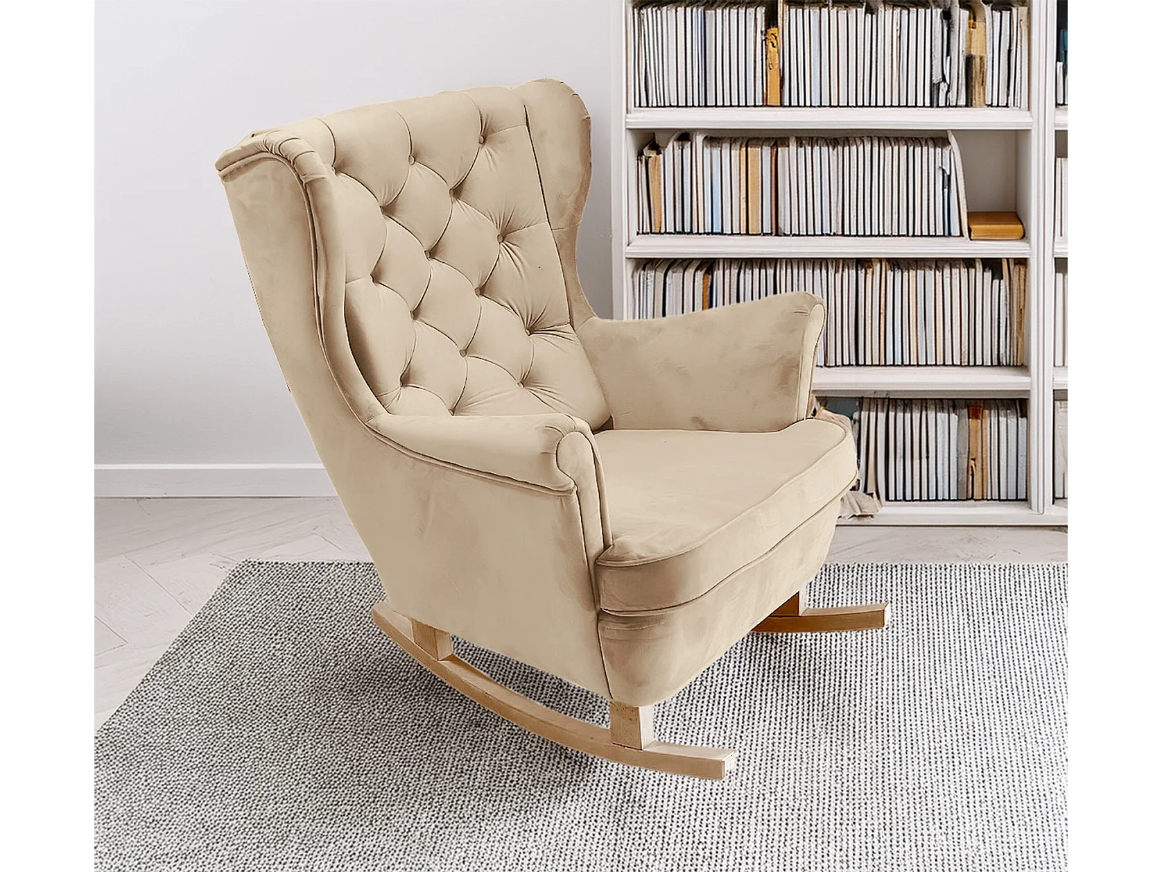 Fauteuil à bascule pieds en bois massif d'hévéa Crème Velours