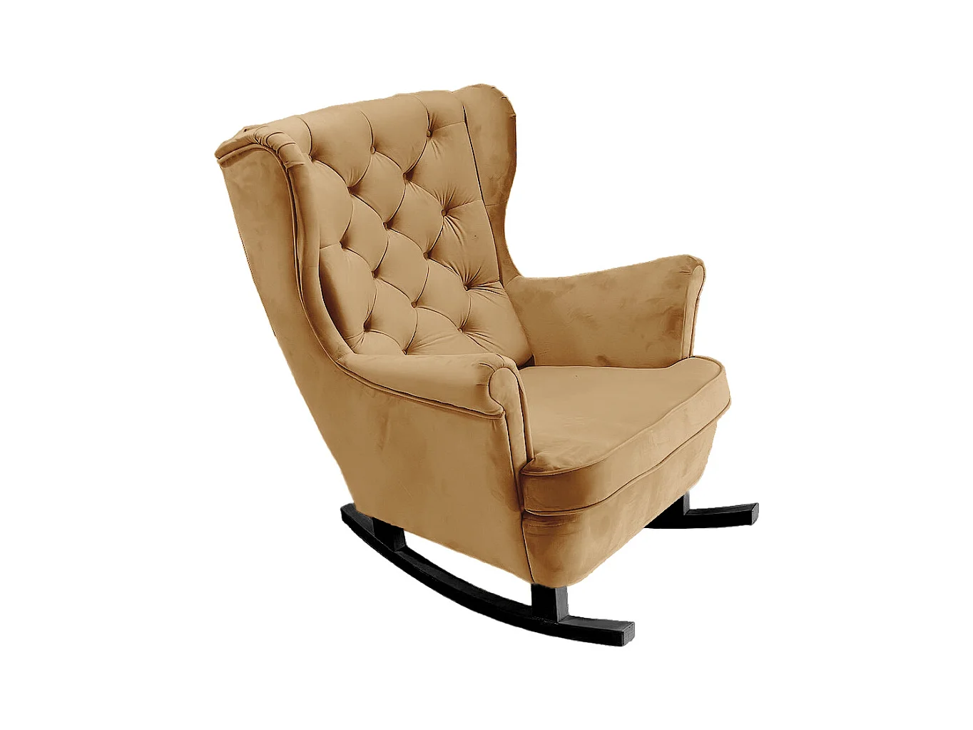 Fauteuil à bascule pieds en bois massif d'hévéa Crème Velours