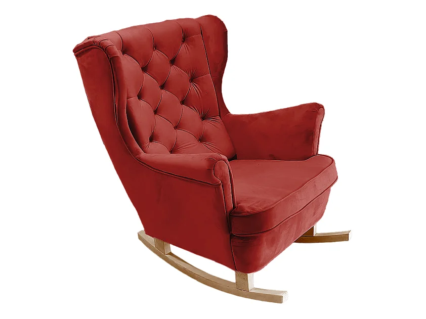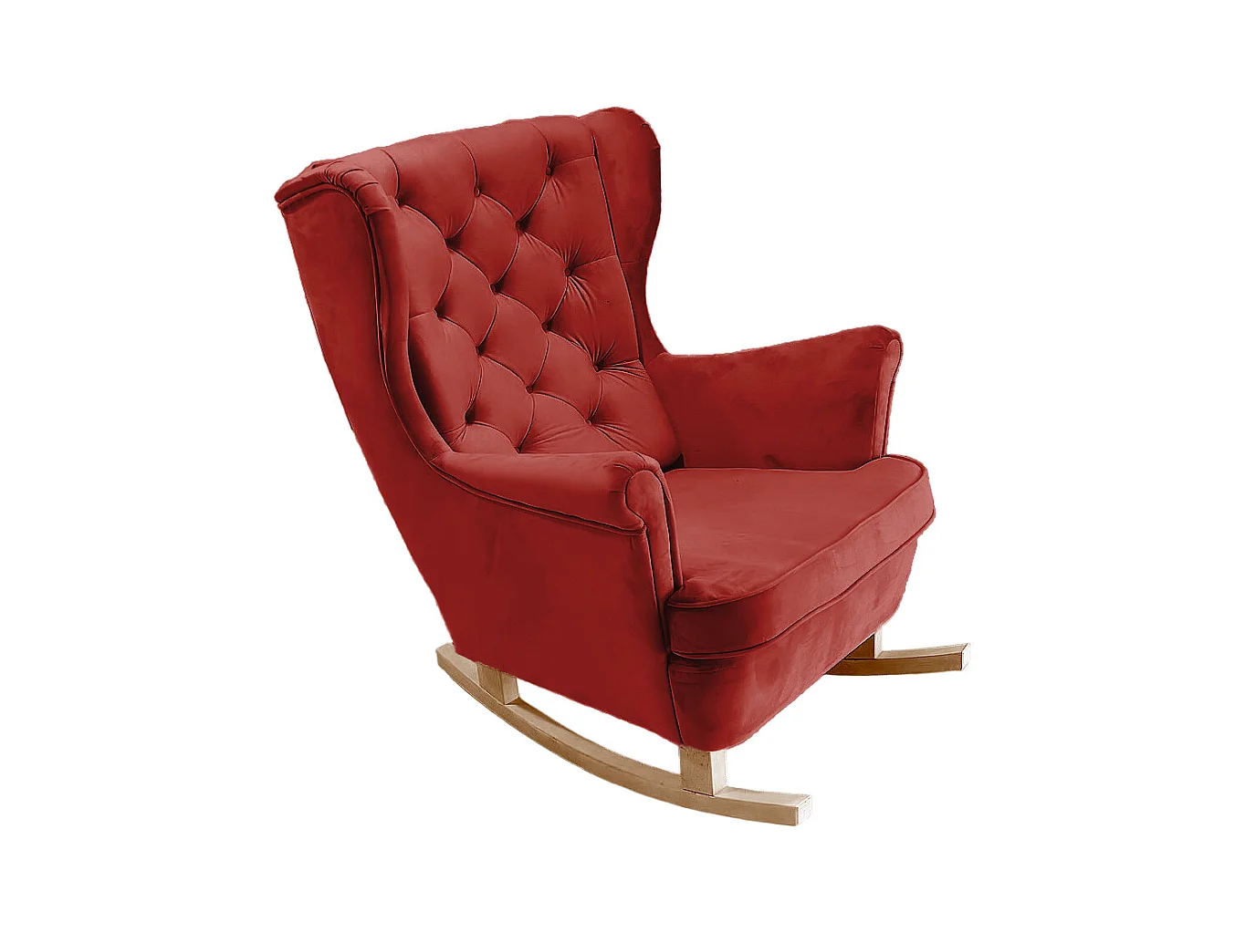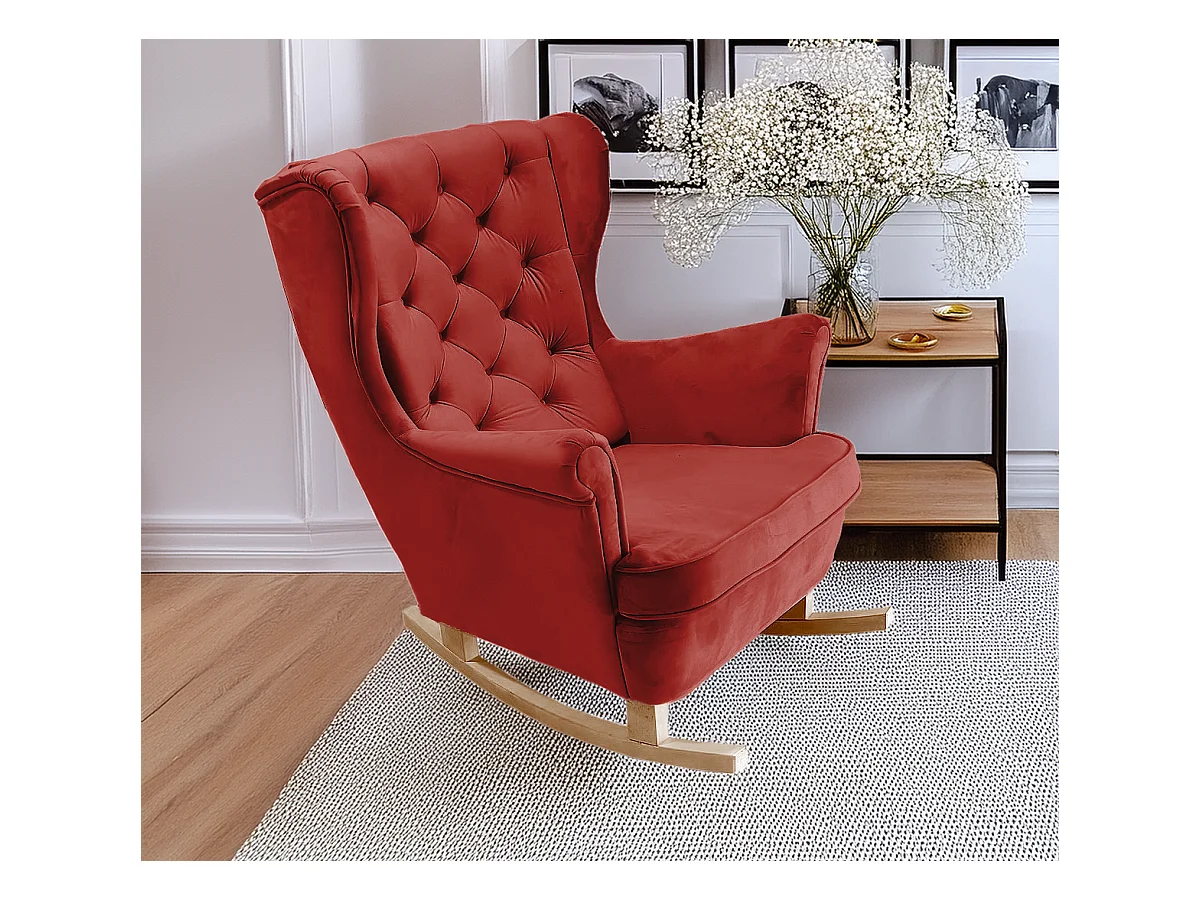 Fauteuil à bascule pieds en bois d'hévéa Rouge bordeaux Velours