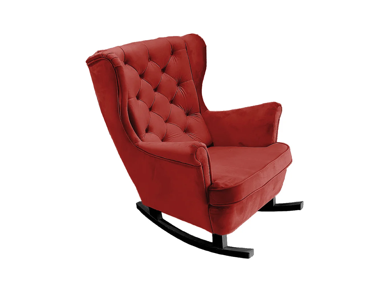 Fauteuil à bascule pieds en bois d'hévéa Rouge bordeaux Velours