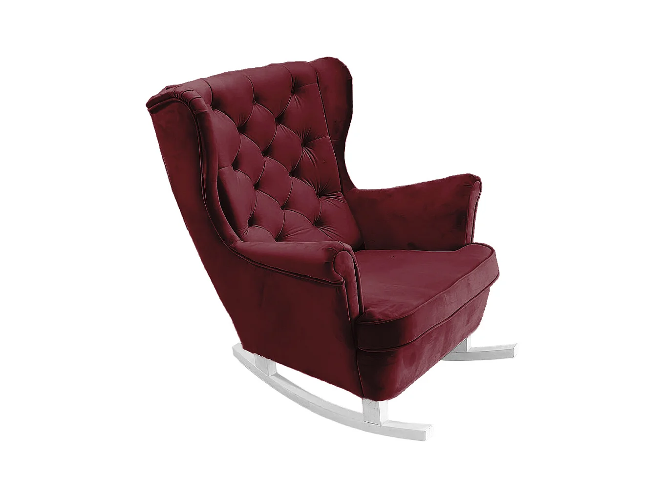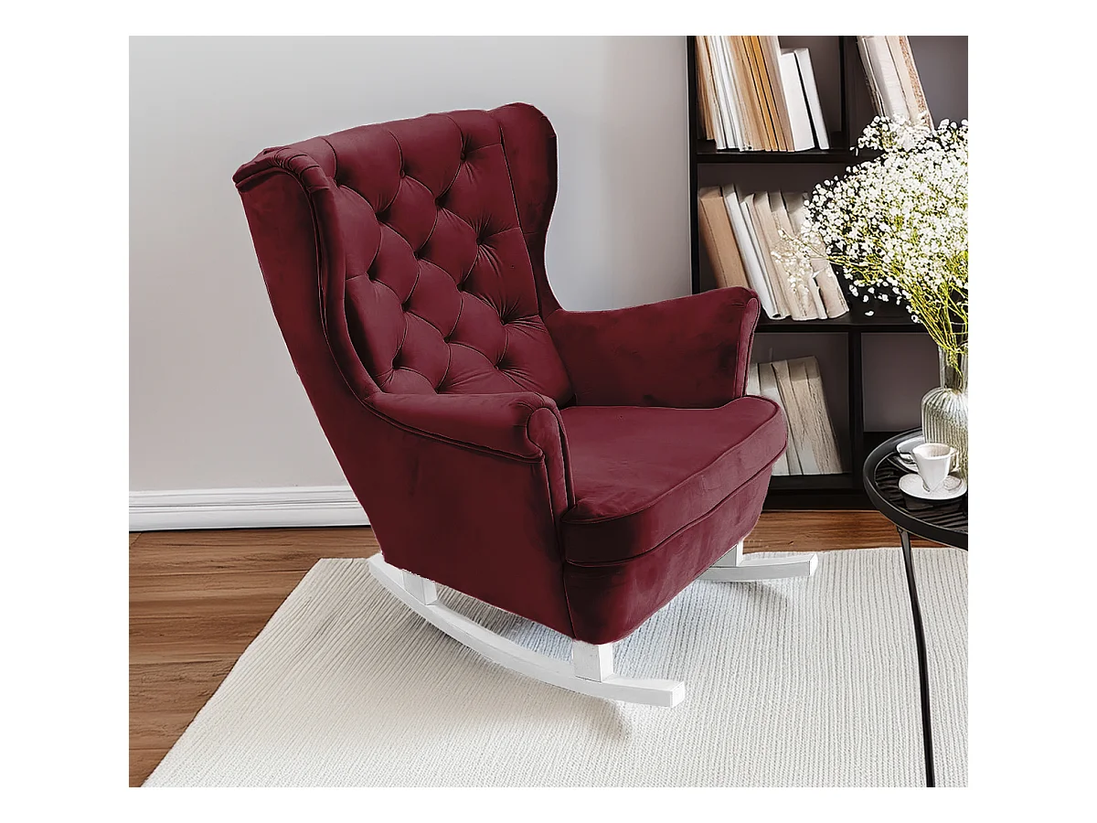 Fauteuil à bascule pieds en bois d'hévéa Rouge bordeaux Velours