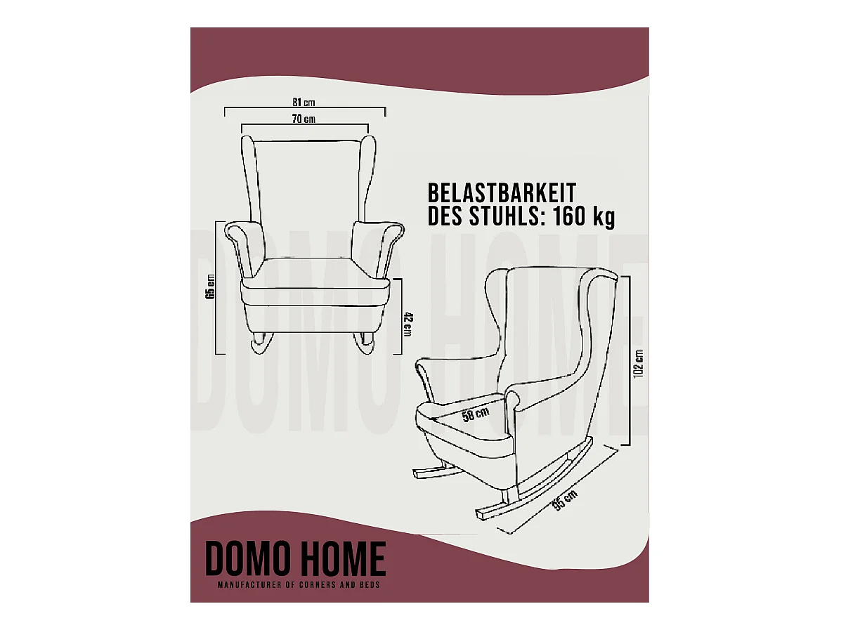 Chaise à bascule avec pieds en bois et tabouret Bordeaux