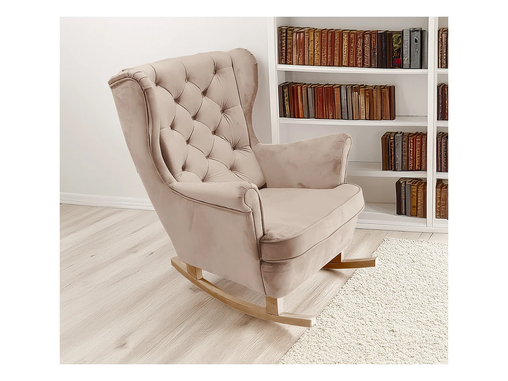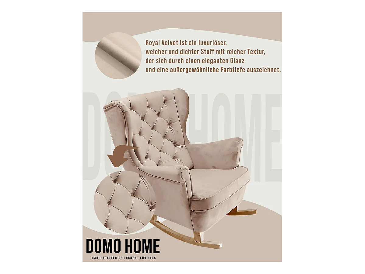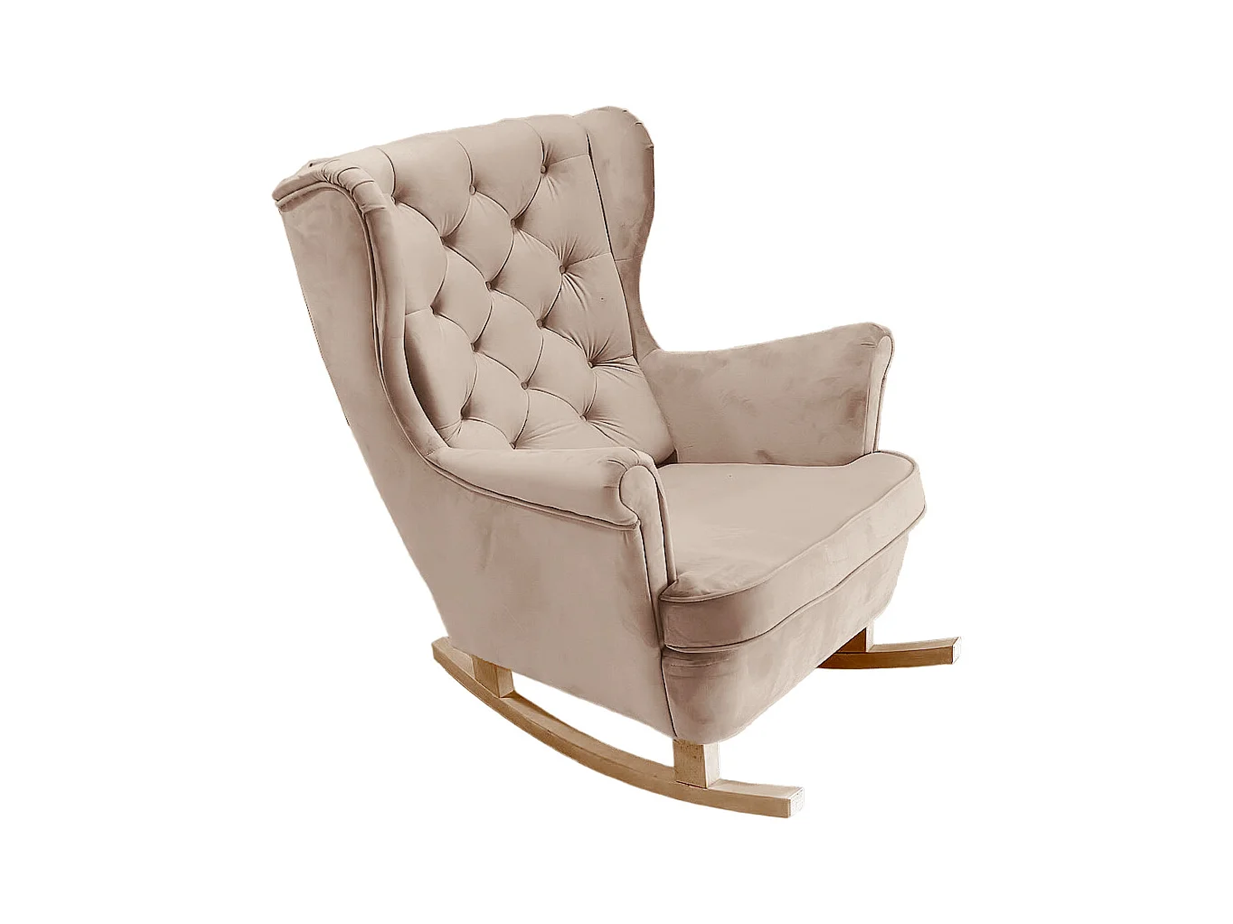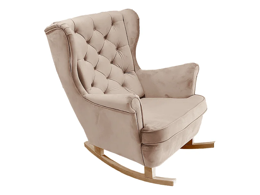 Fauteuil à bascule pieds en bois massif d'hévéa Crème Velours