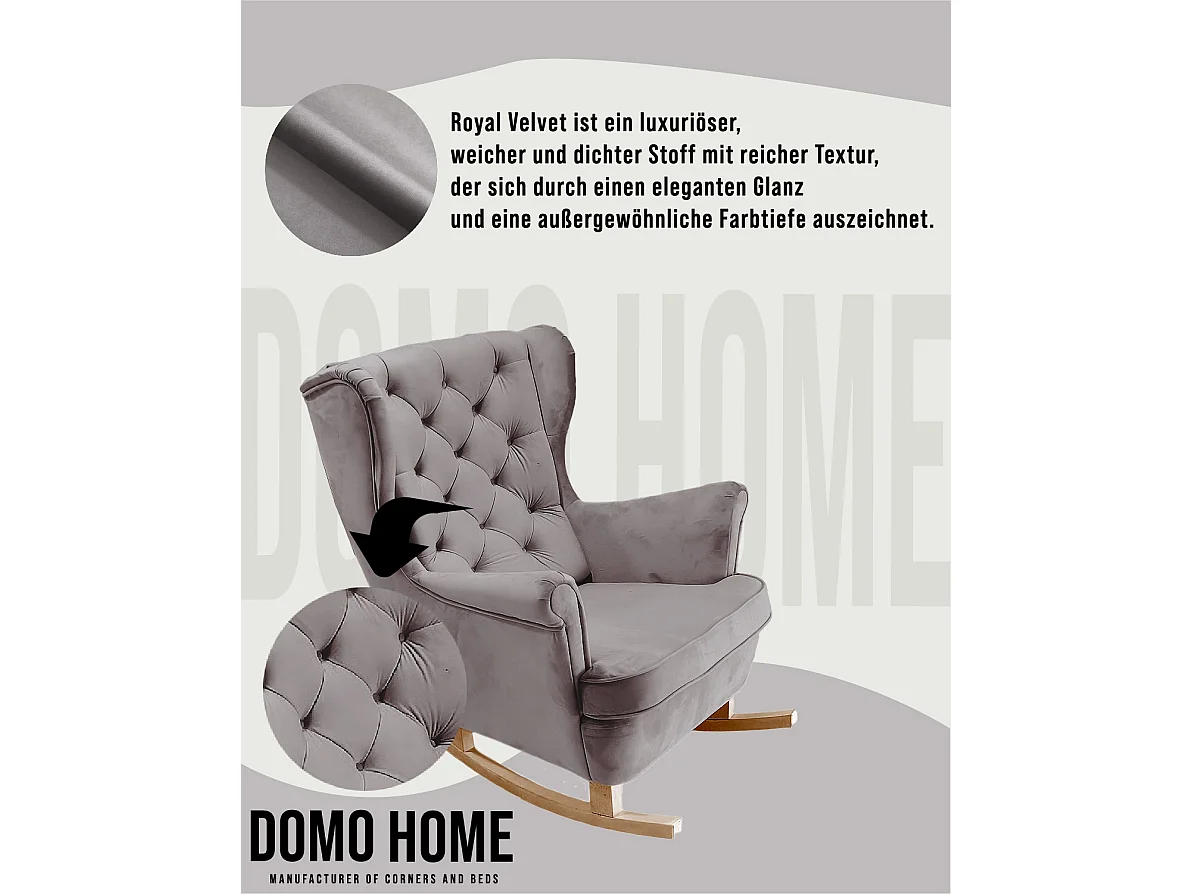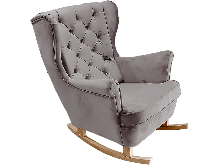 Fauteuil à bascule et pieds en bois d'hévéa Gris clair Velours