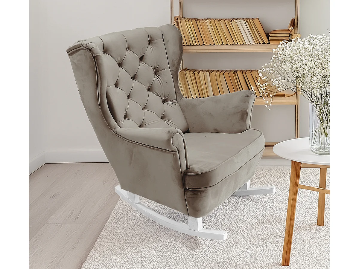 Fauteuil à bascule et pieds en bois d'hévéa Gris clair Velours