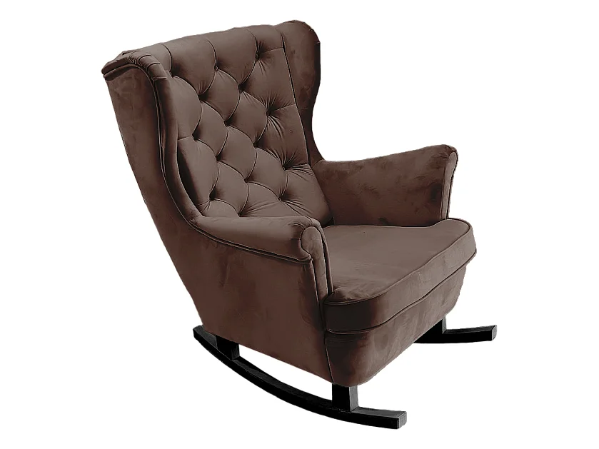 Fauteuil à bascule pieds en bois massif d'hévéa Marron Velours