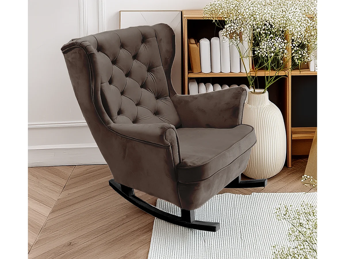 Fauteuil à bascule pieds en bois massif d'hévéa Marron Velours