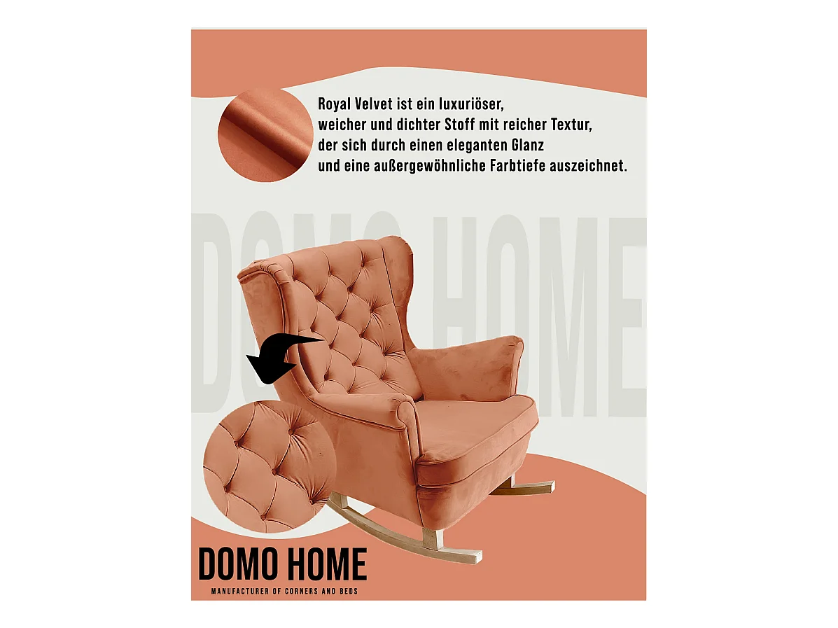 Fauteuil à bascule luxueux en velours avec structure en métal et pieds en bois pour une chambre confortable