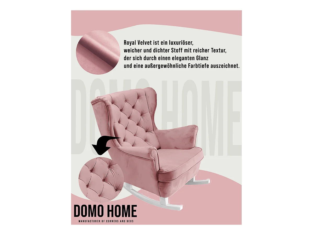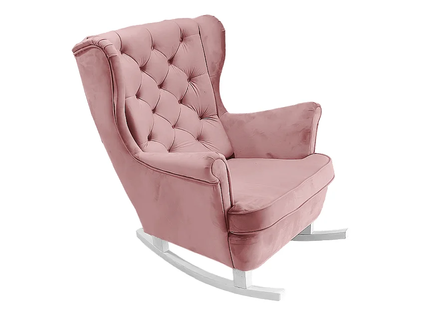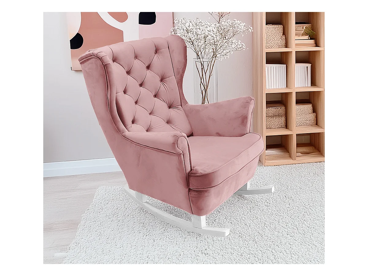 Fauteuil à bascule et pieds en bois massif d'hévéa Rose Velours