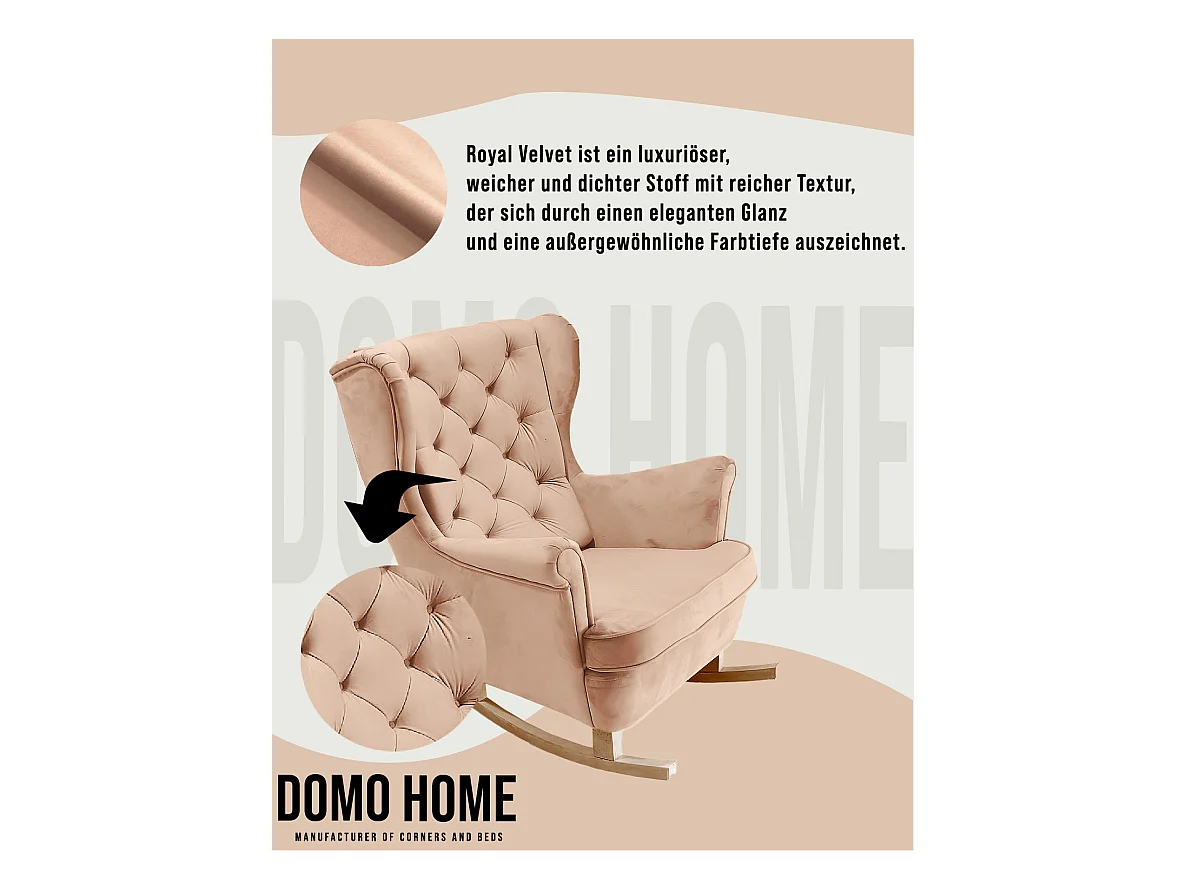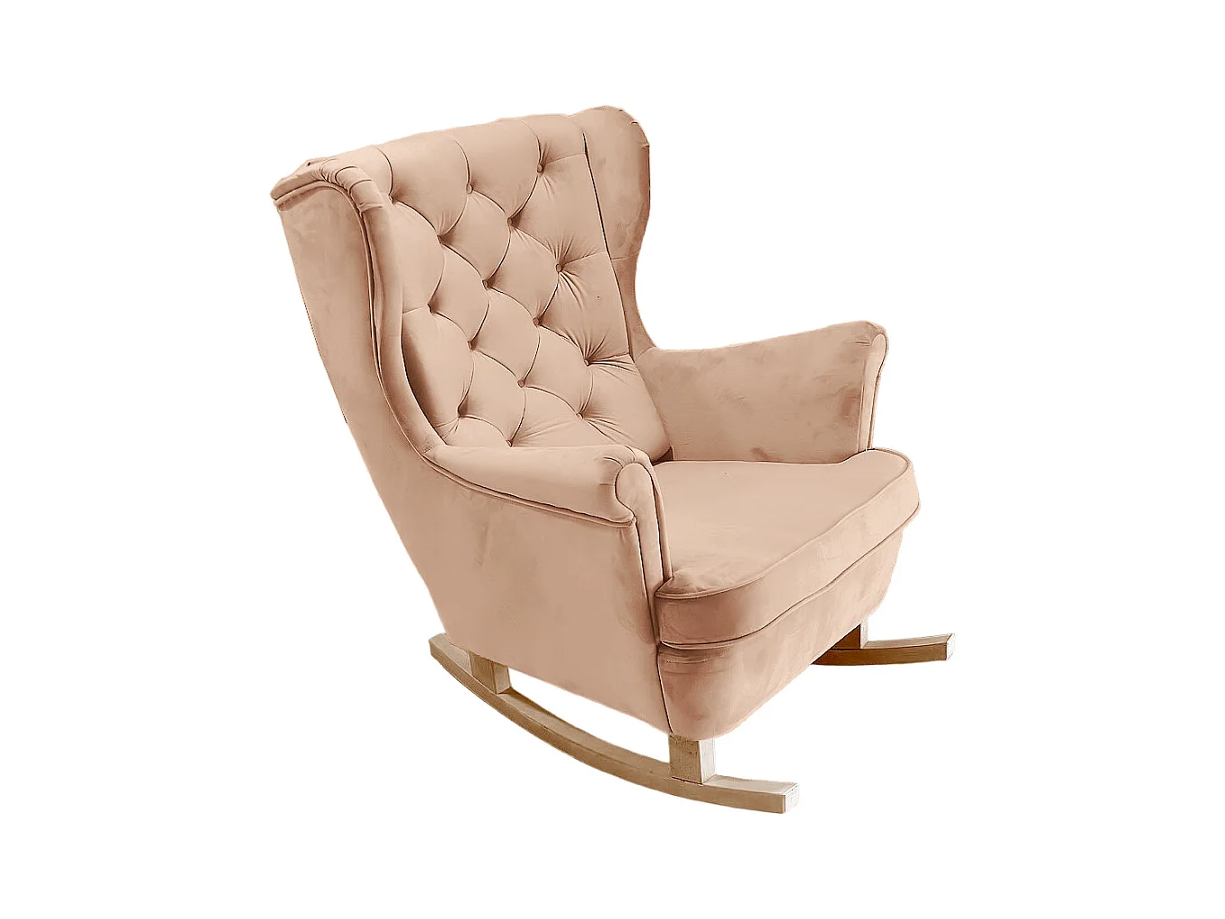 Fauteuil à bascule et pieds en bois massif d'hévéa Rose Velours