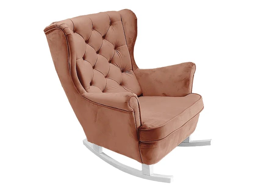 Fauteuil à bascule et pieds en bois massif d'hévéa Rose Velours