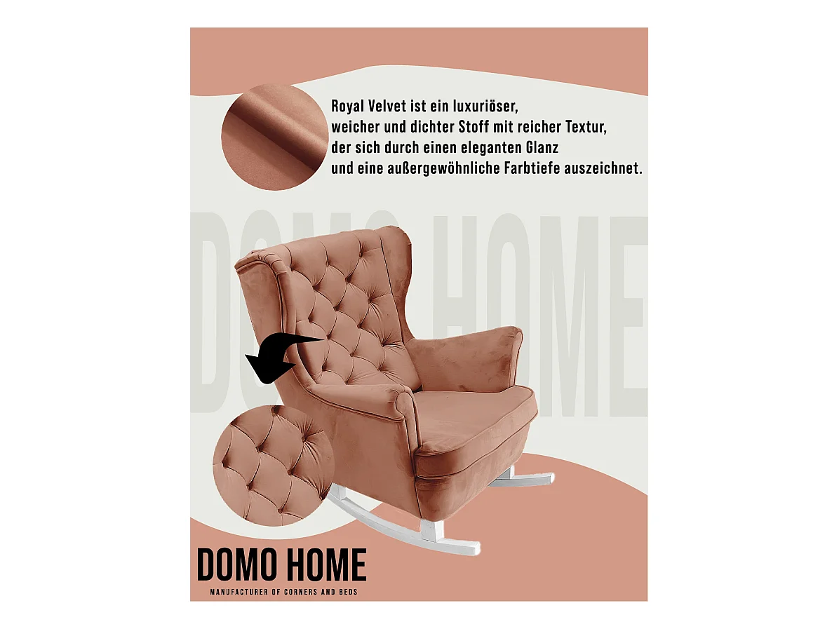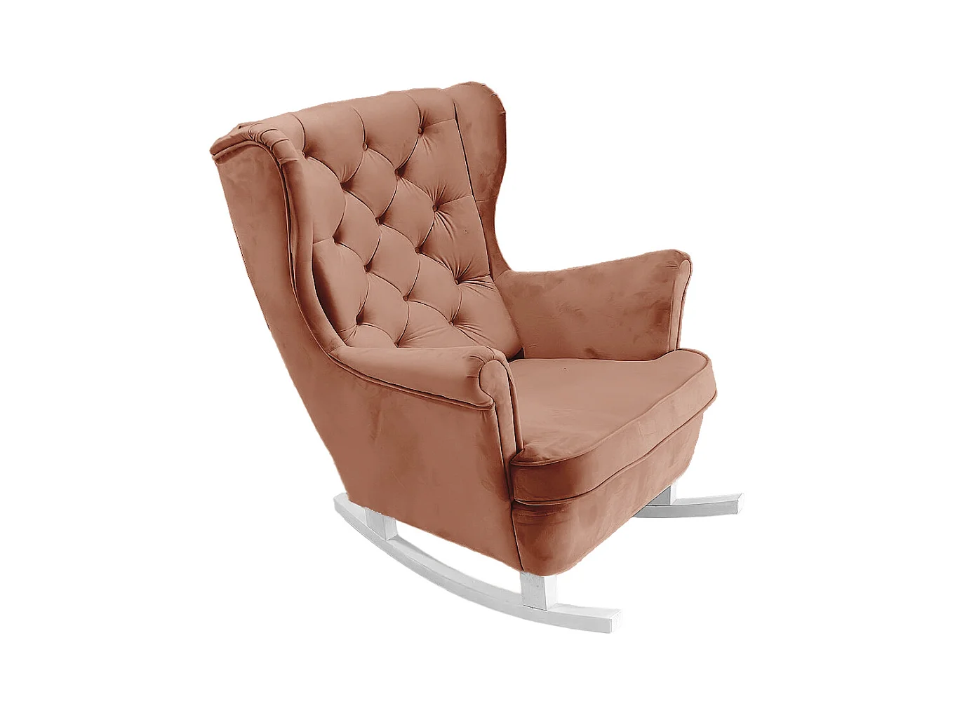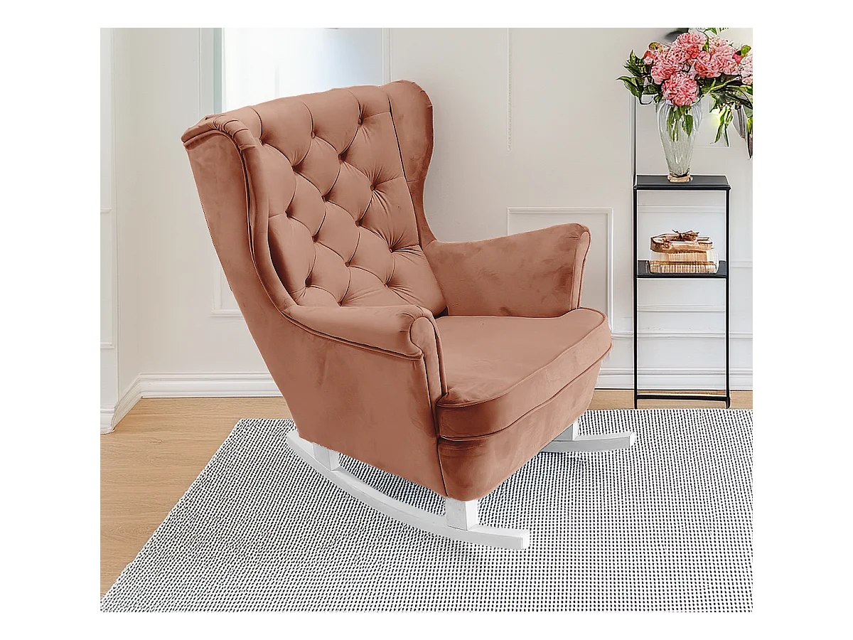 Fauteuil à bascule et pieds en bois massif d'hévéa Rose Velours