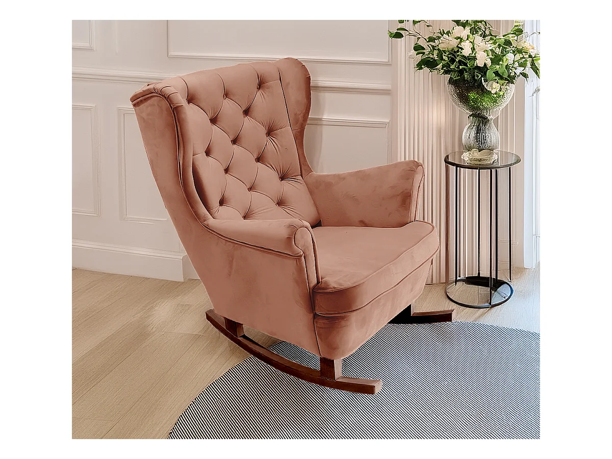 Fauteuil à bascule et pieds en bois massif d'hévéa Rose Velours