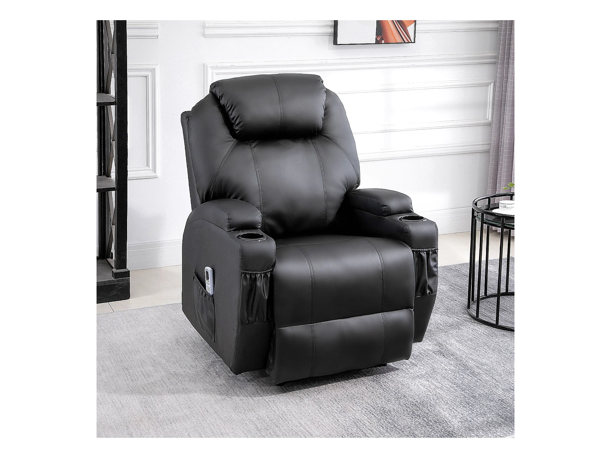 Fauteuil relax avec fonction de massage, inclinaison réglable, simili cuir noir (82x97x110 cm)