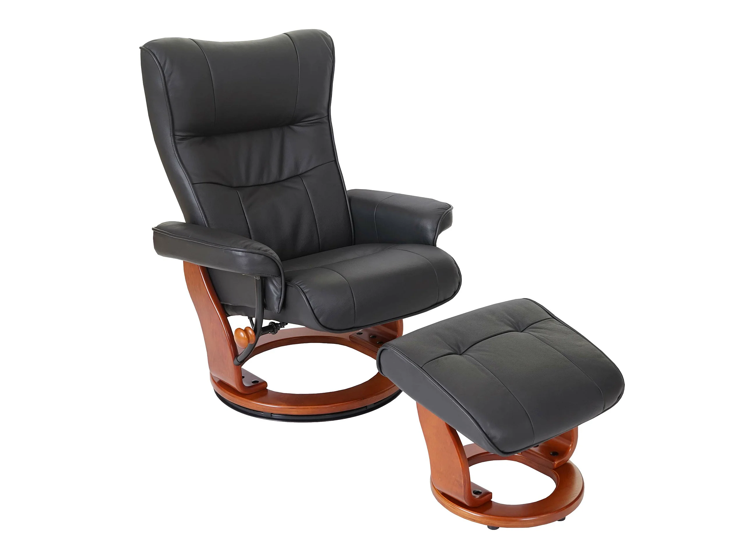 Fauteuil pivotant relax cuir avec mécanisme du dossier rabattable Kora-Couleur Cuir Piel noir