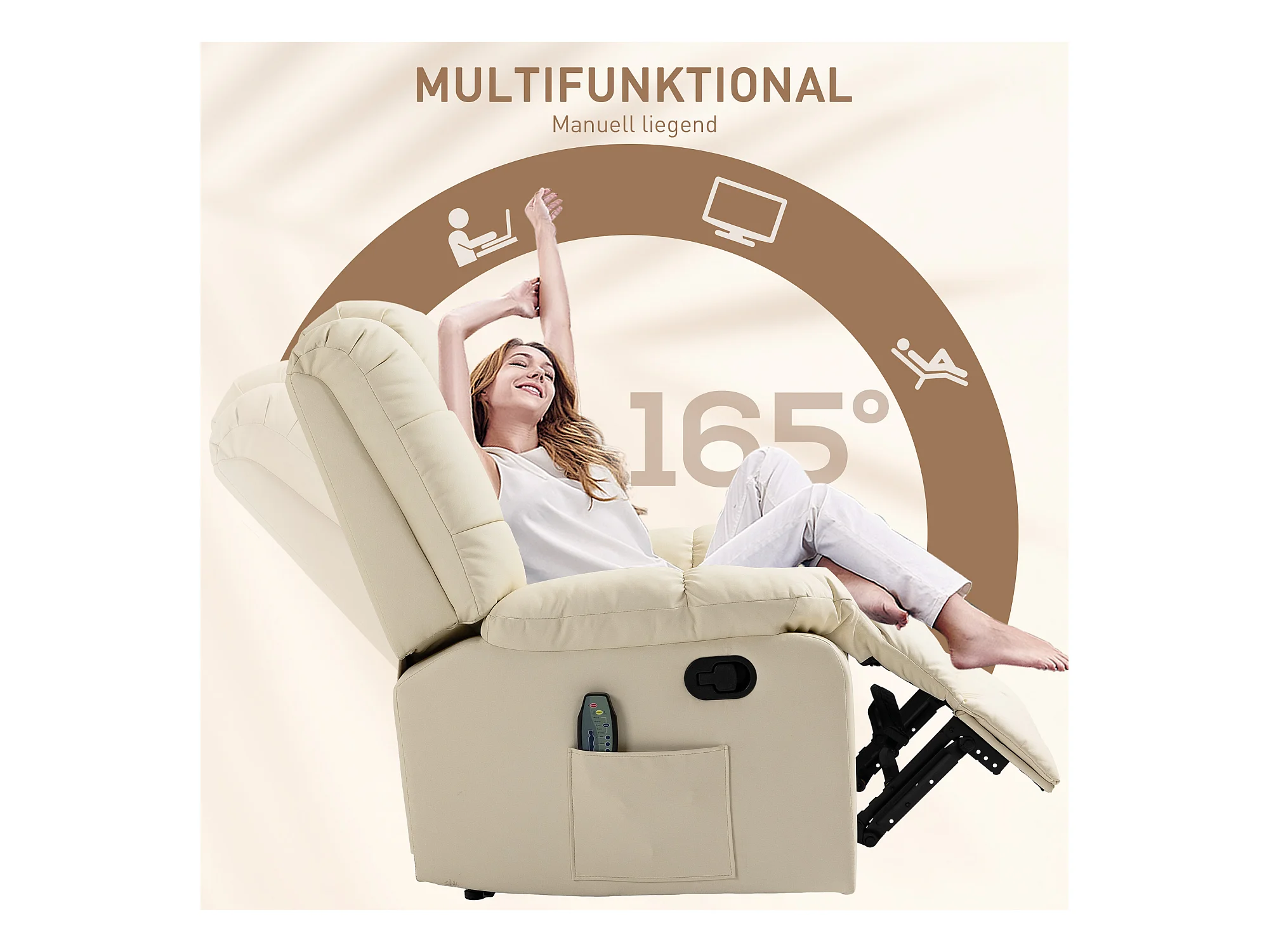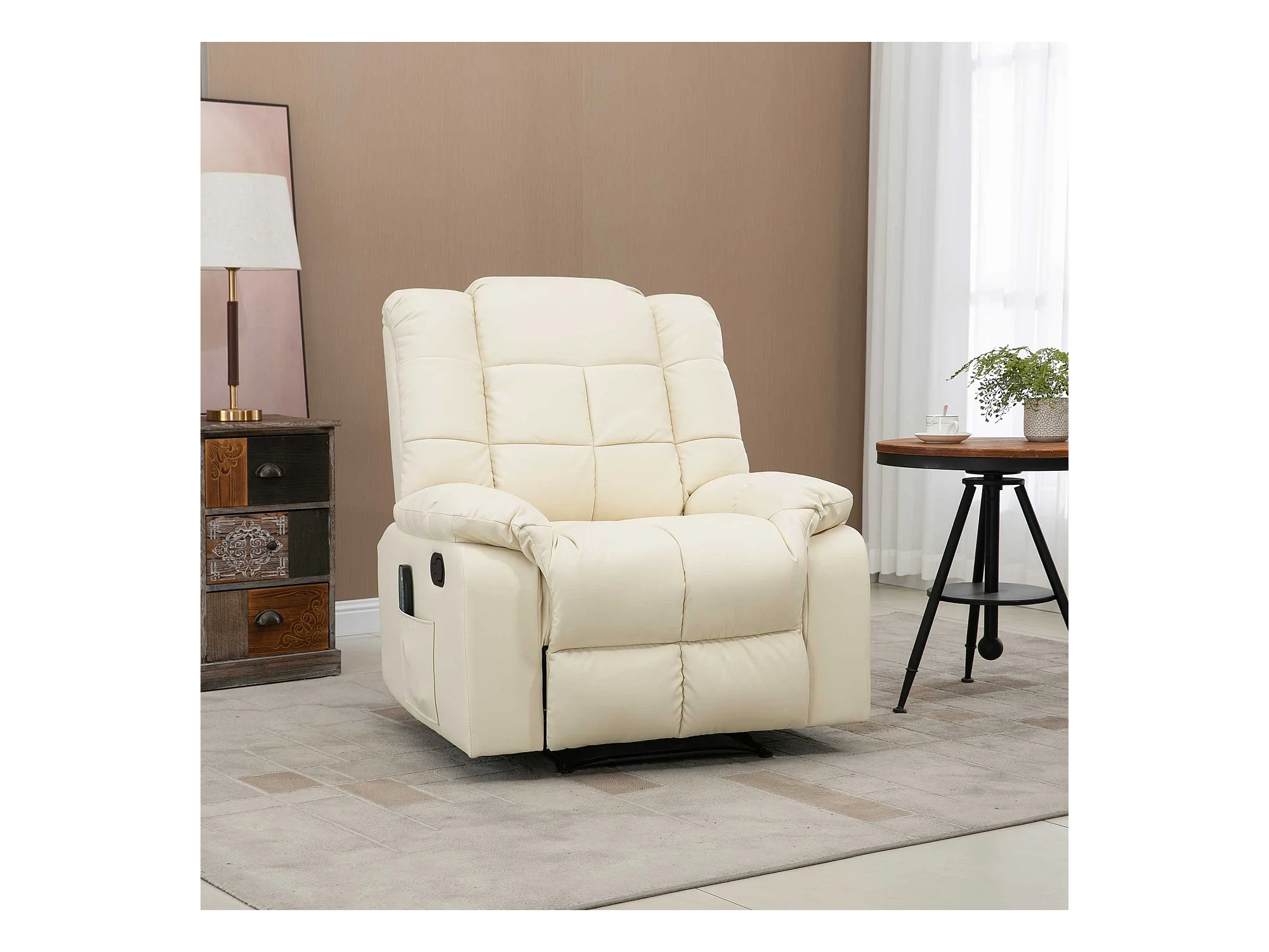 Fauteuil de relaxation avec fonction de massage, 5 modes, revêtement en simili cuir, crème (84x92x109 cm)