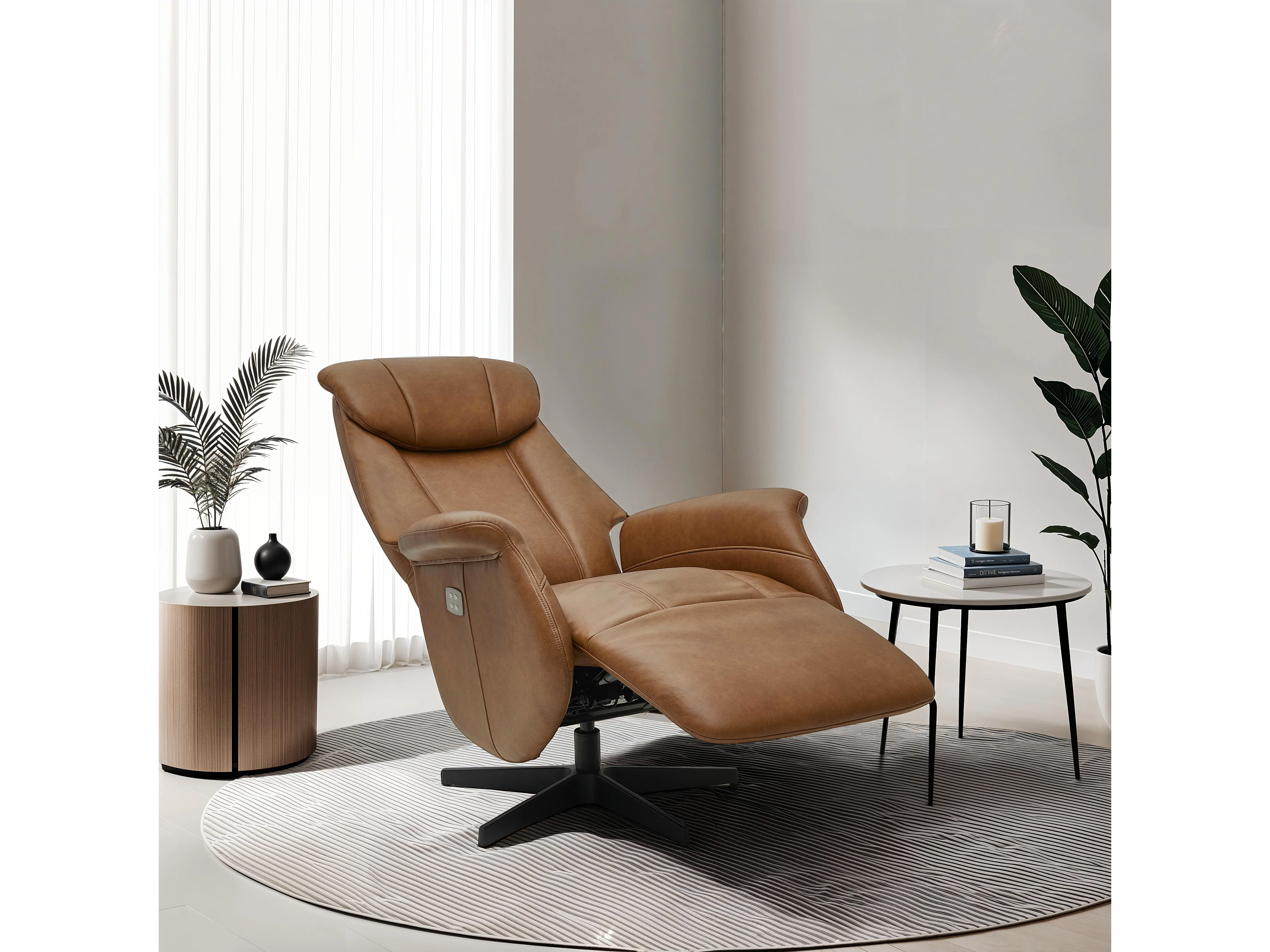 Fauteuil relax électrique Bonanza - Cuir et métal - Marron