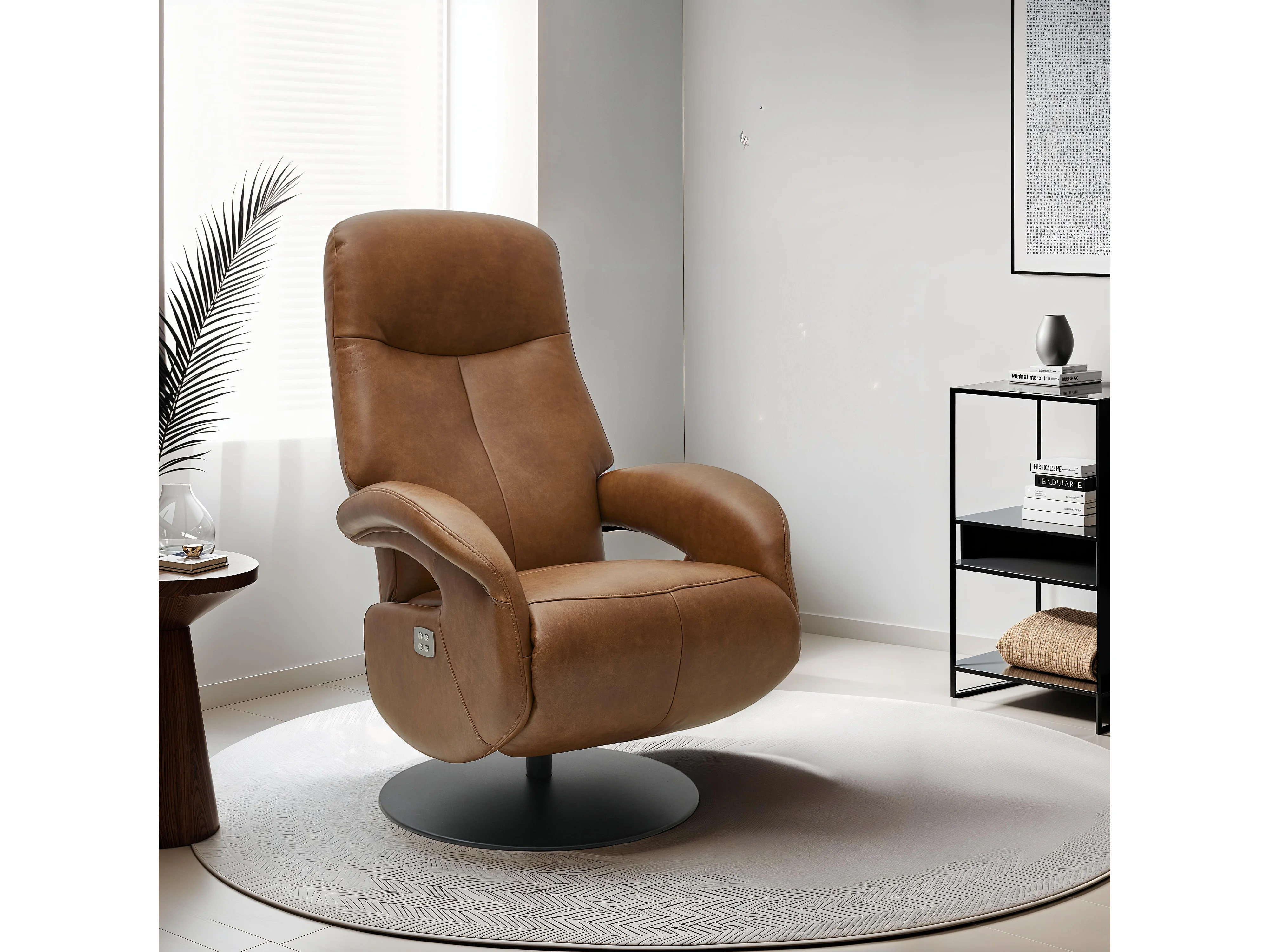 Fauteuil relax électrique Bonanza - Cuir et métal - Marron