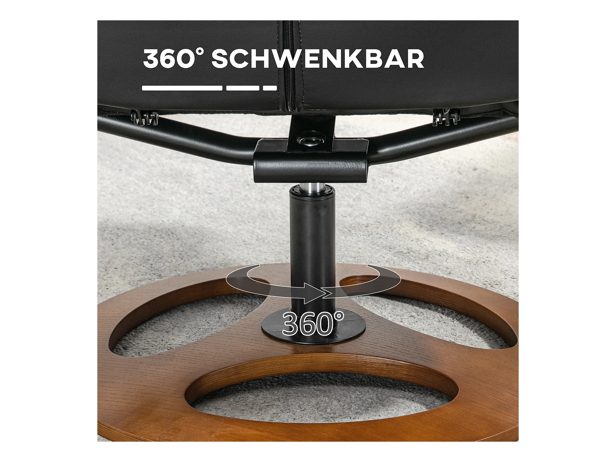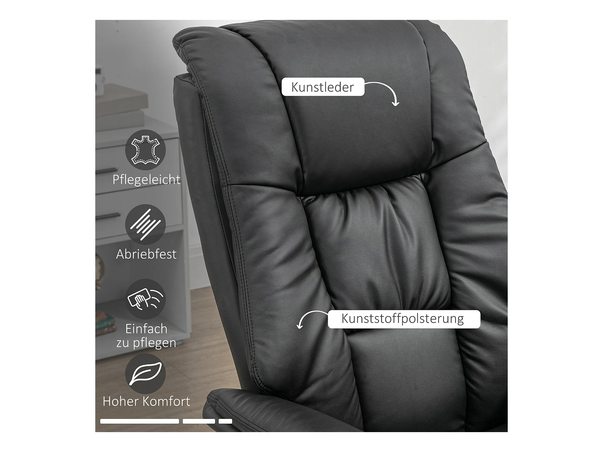 Relaxsessel avec Hocker, Massagesessel 10 points de vibration, 360° pivotant, simili cuir noir (76x81x105 cm)