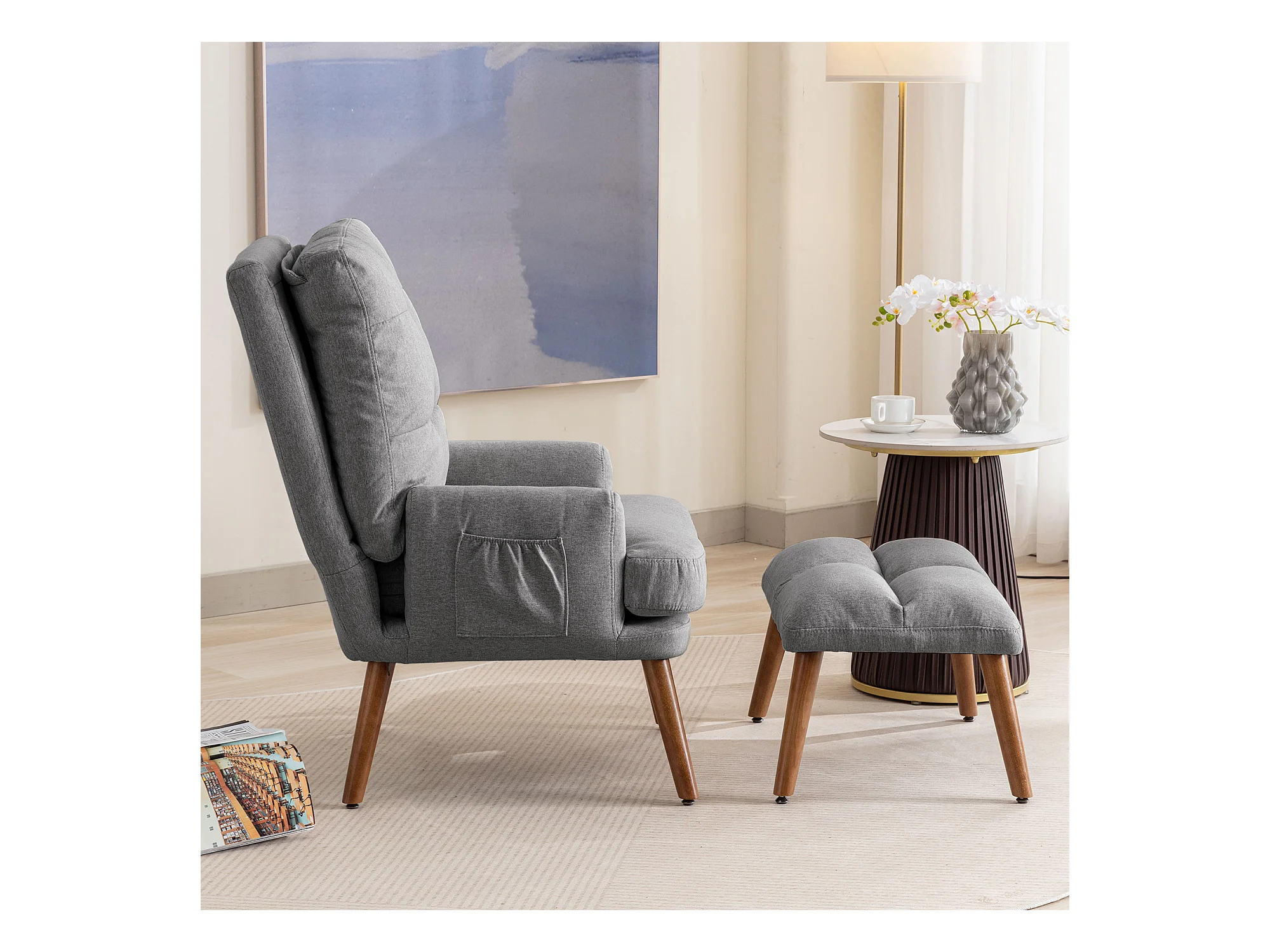 Fauteuil relax inclinable avec repose-pieds, dossier 5 positions réglables, rangement latéral, tissu gris (65x96.5x60cm)