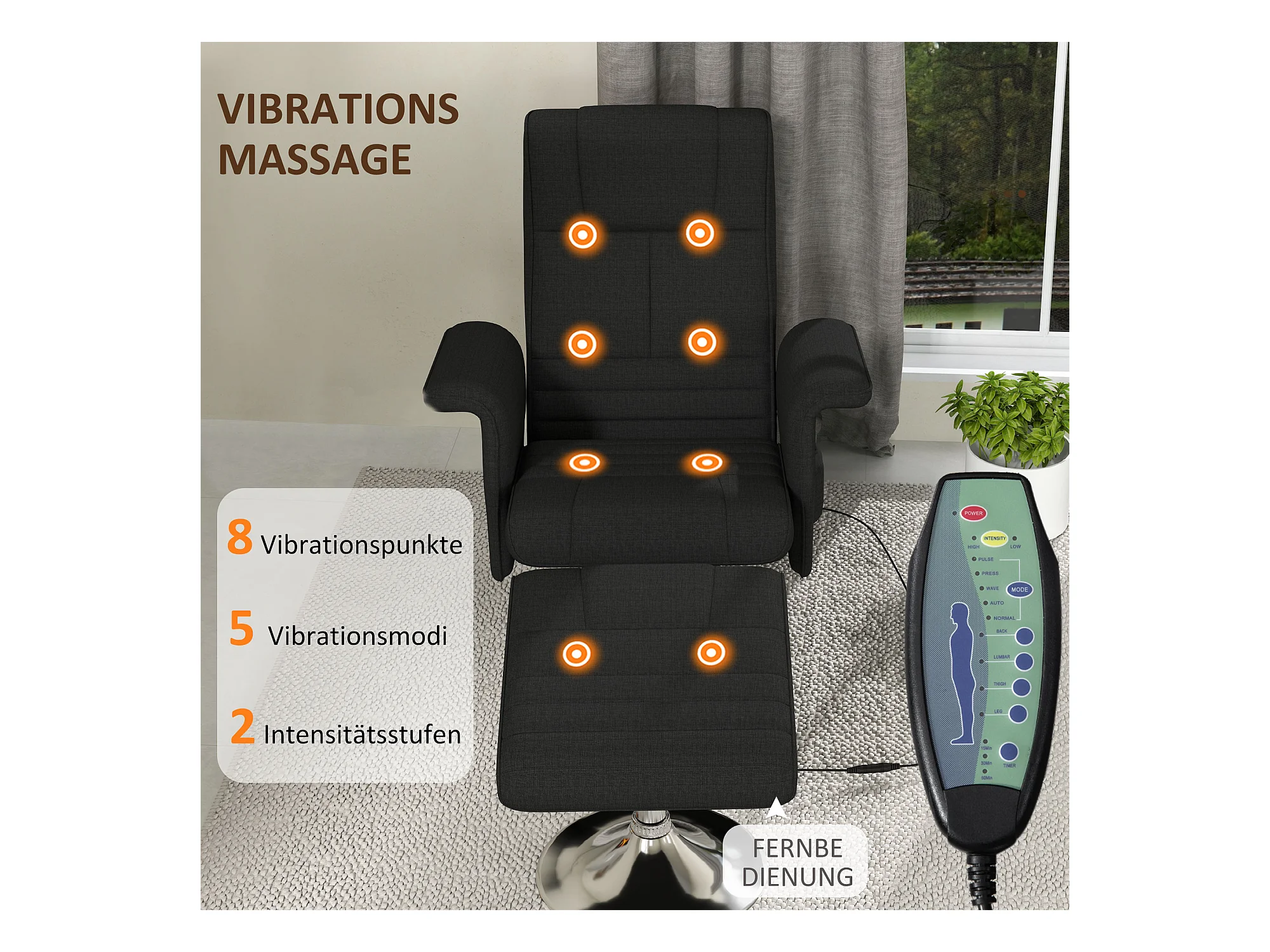 Fauteuil relax pivotant avec repose-pieds, 8 points de massage, fonction de bascule, simili cuir, acier, noir (78x95x88 cm)