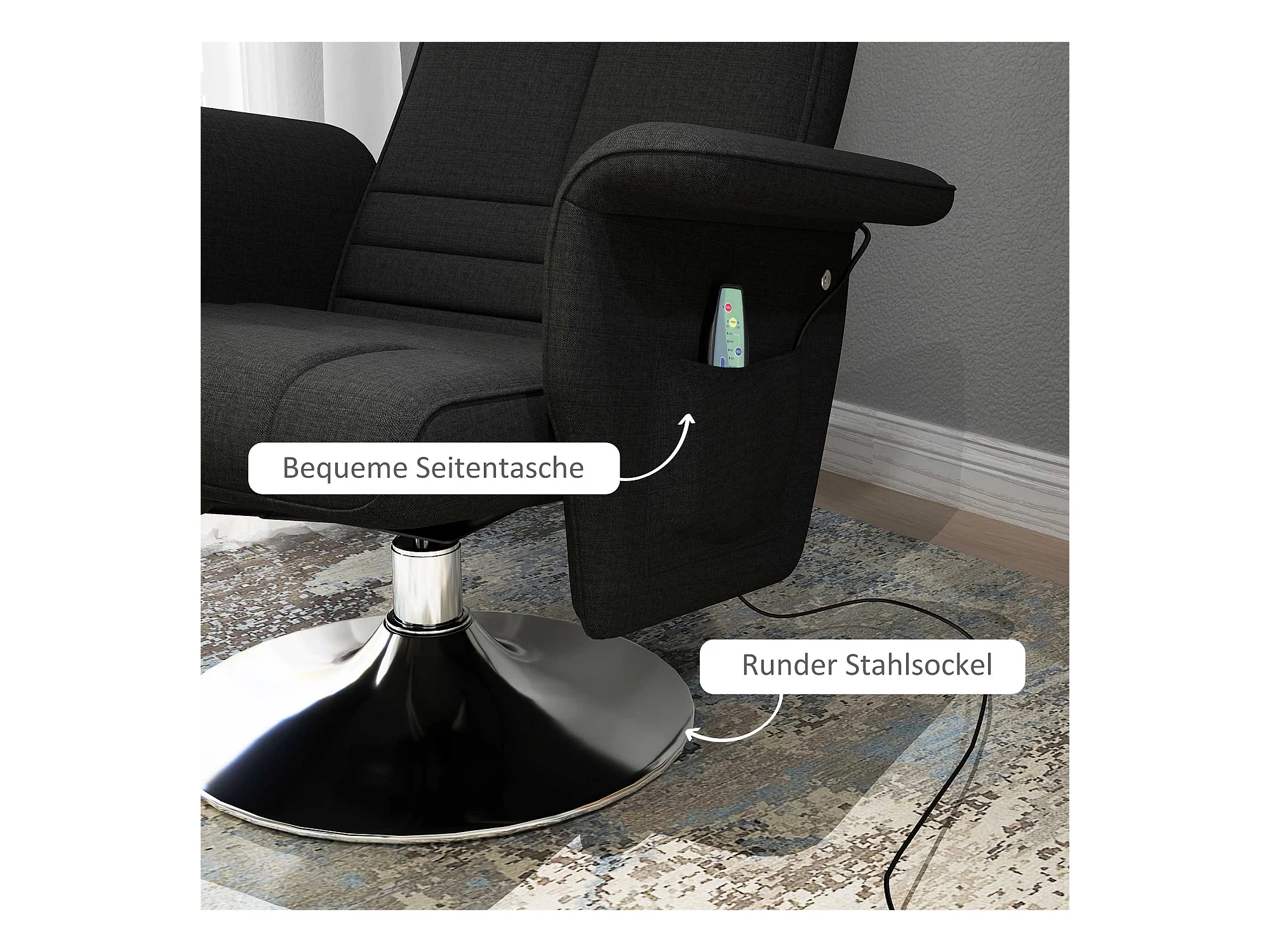 Relaxsessel avec fonction inclinable, massage à 5 points, chauffage électrique & repose-pieds, 360° pivotant, PU noir (76x75x103 cm)
