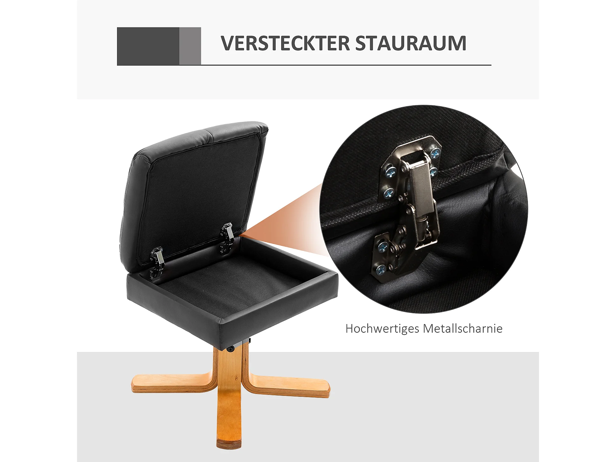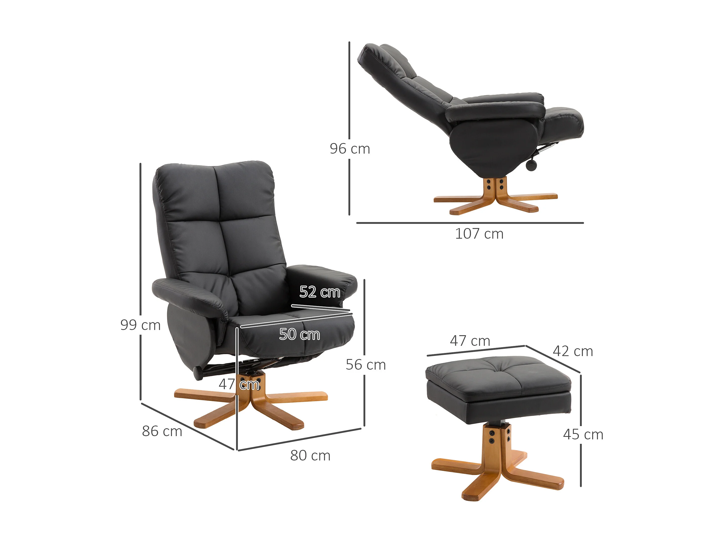 Fauteuil relax pivotant avec repose-pieds, PU, structure bois, noir (80x86x99 cm)