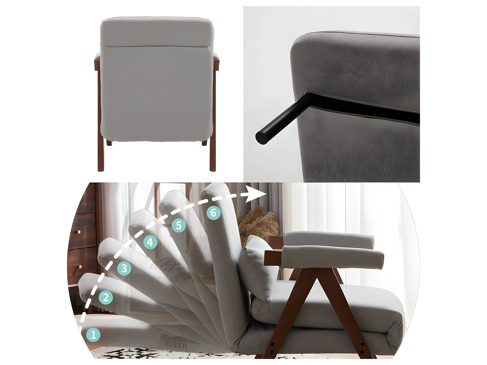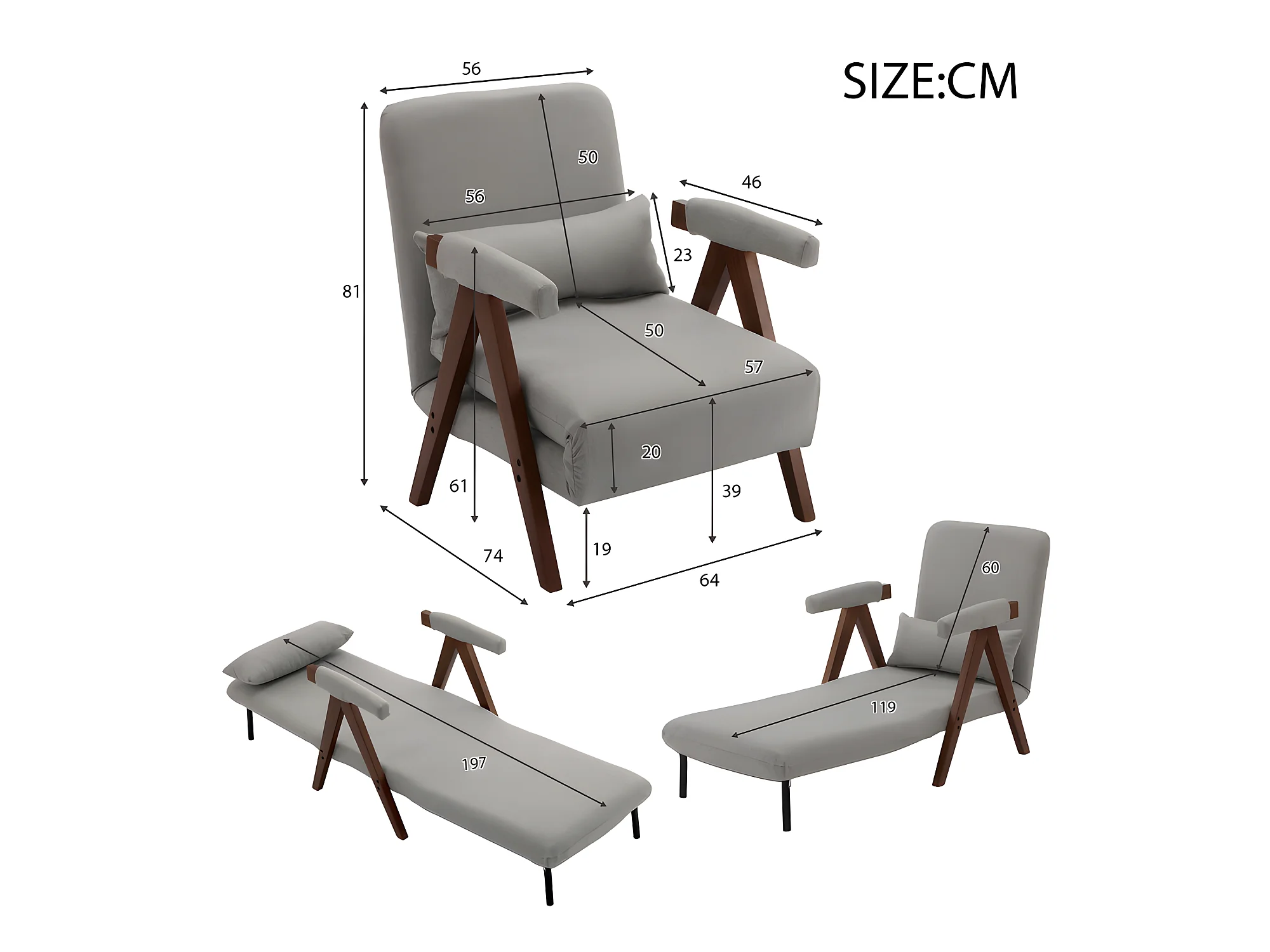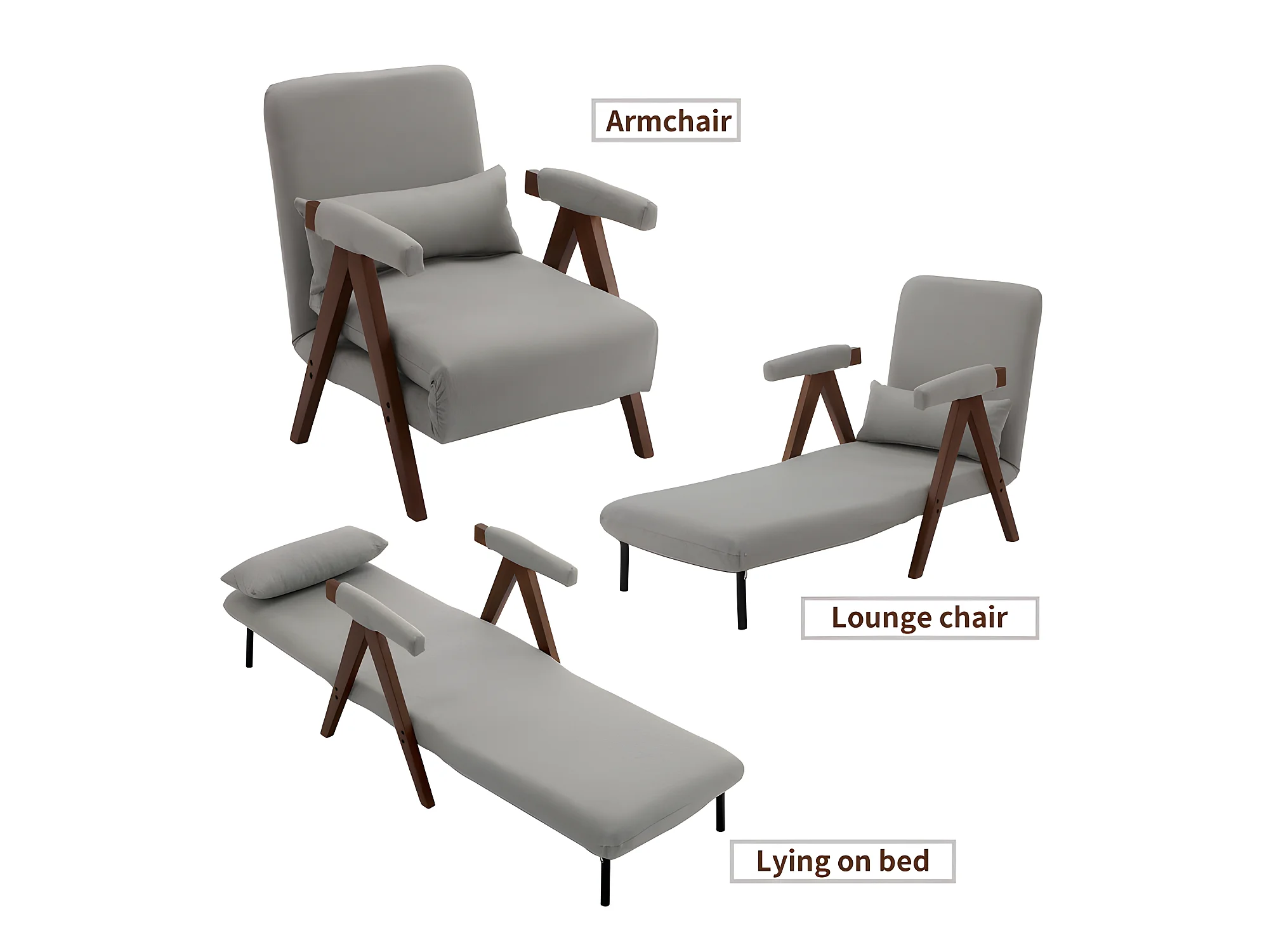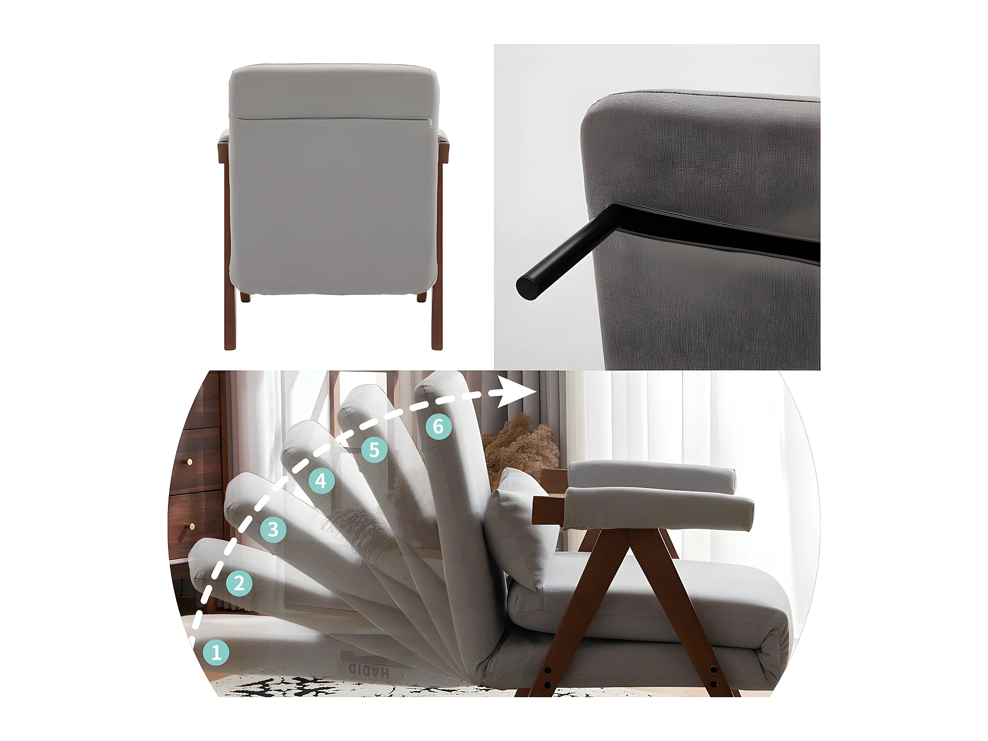 Fauteuil rembourré convertible réglable tissu en coton - Gris