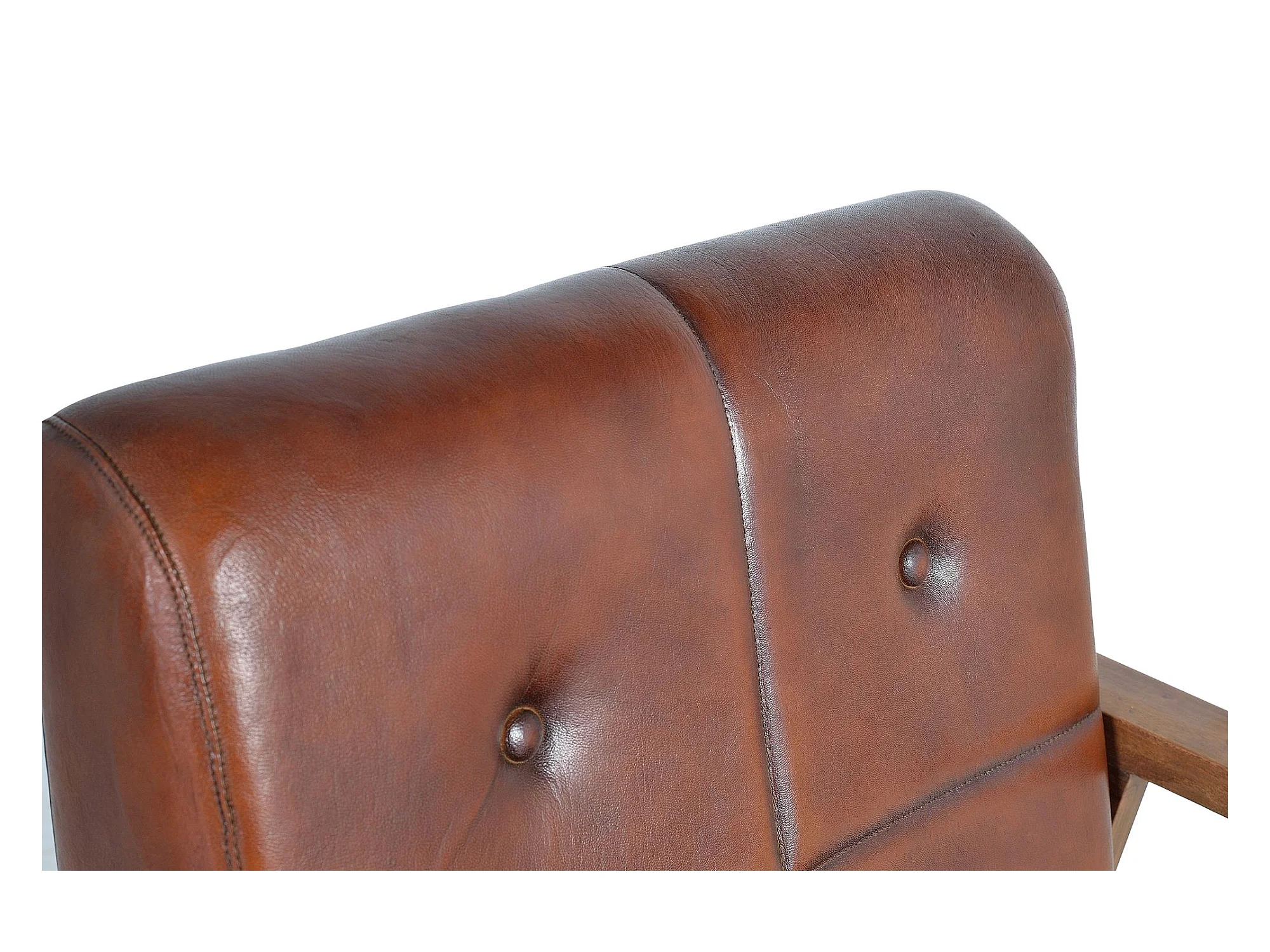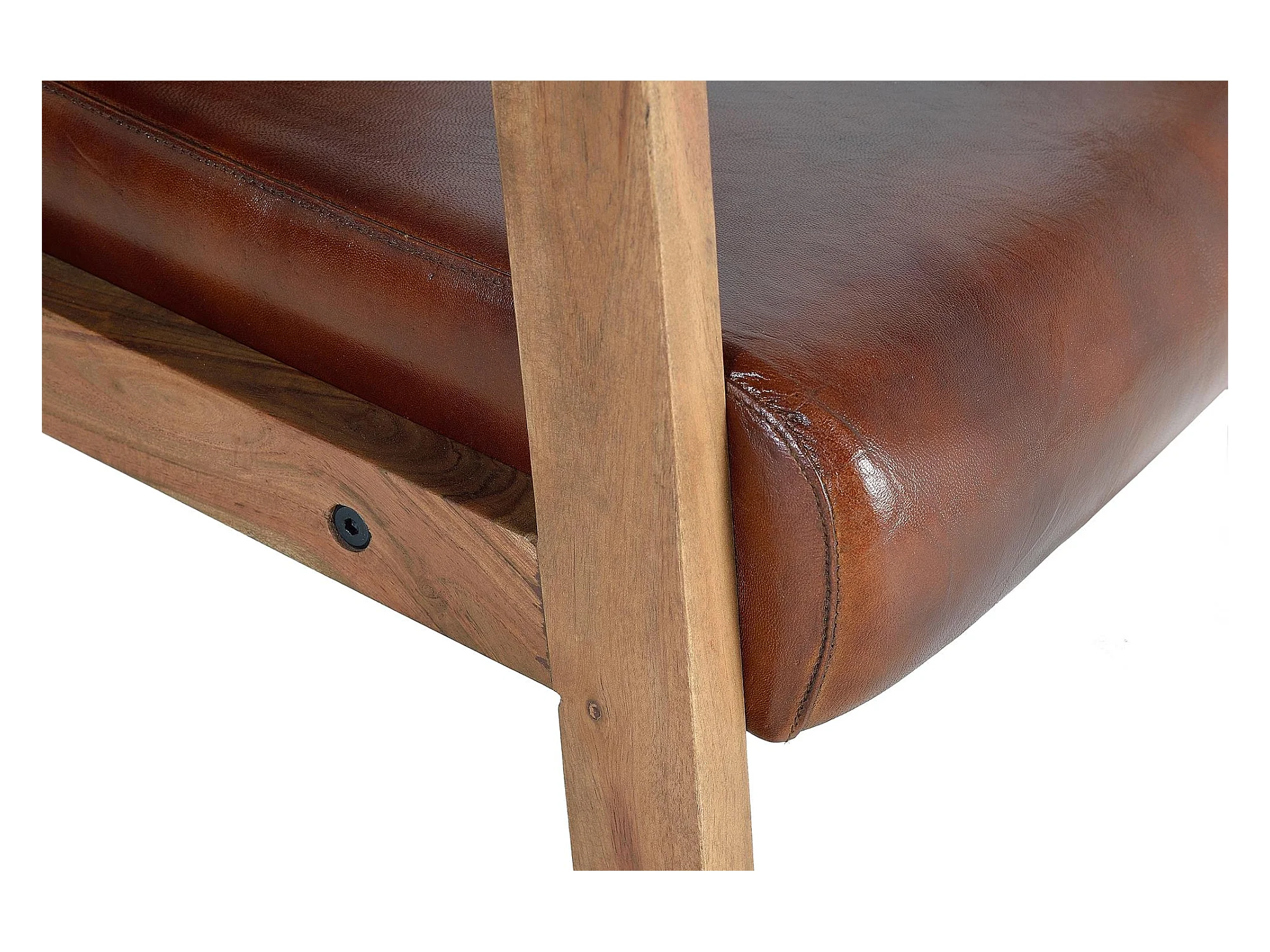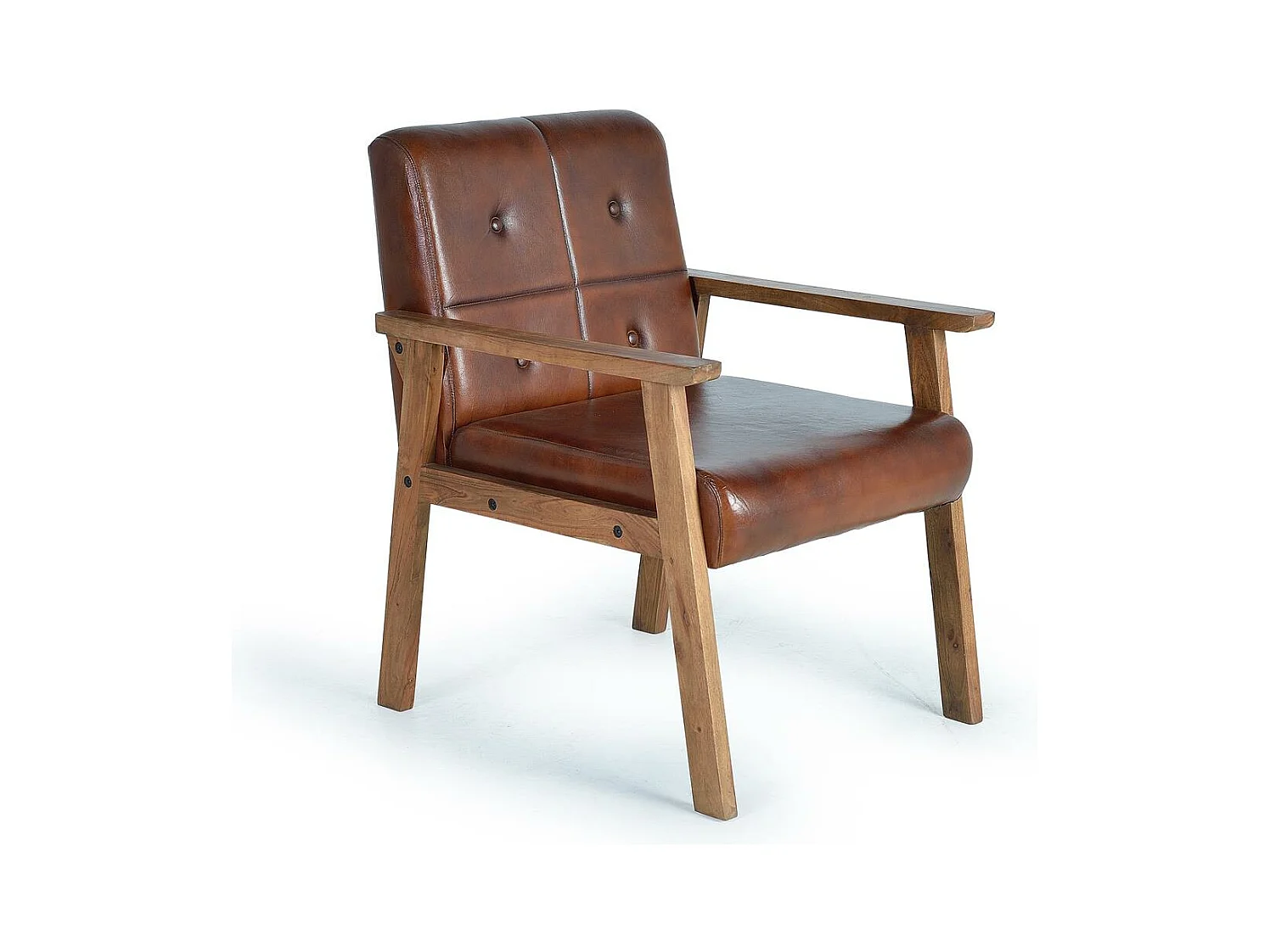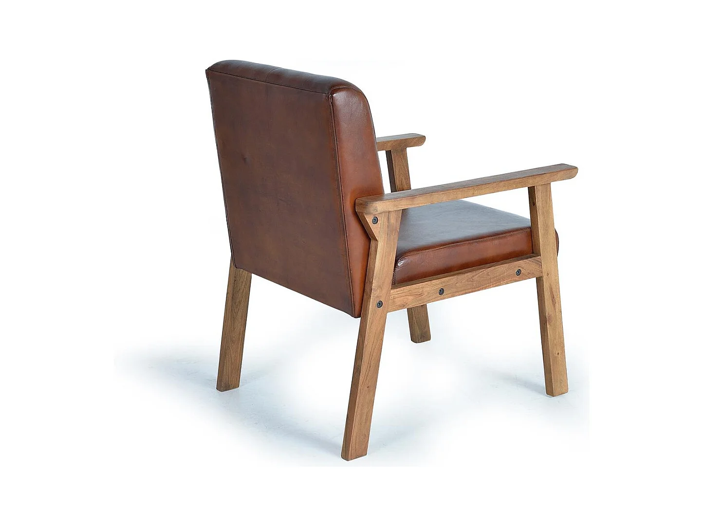 Fauteuil Marron Cuir véritable et bois de manguier massif