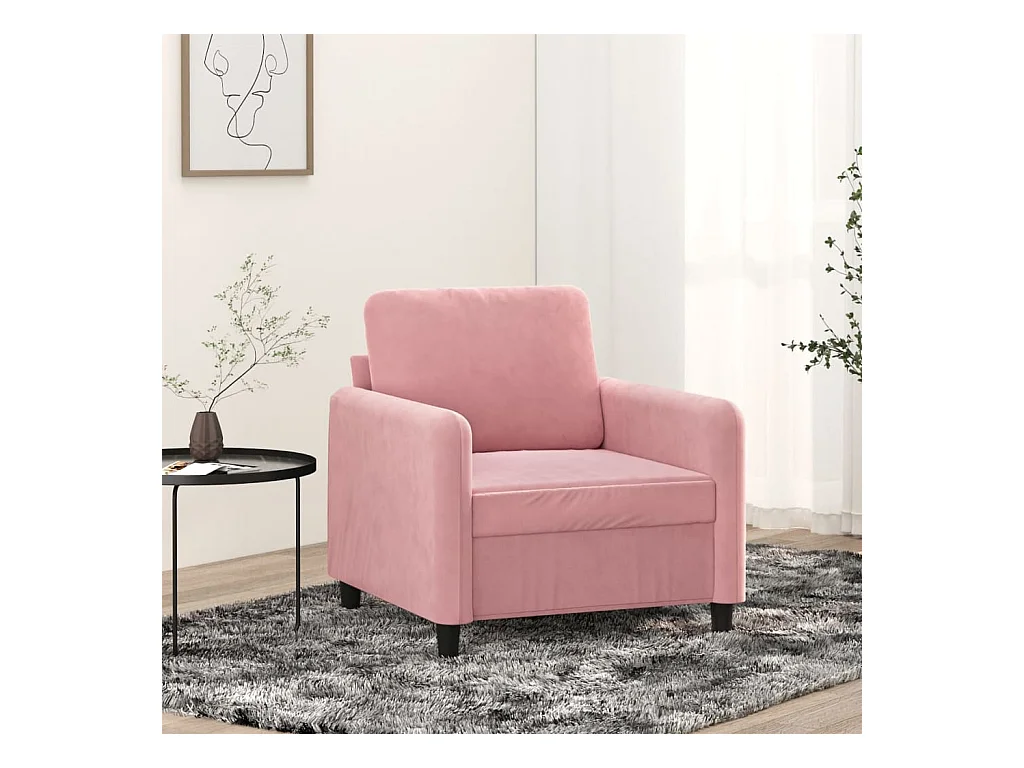 Fauteuil de salon en velours rose avec pieds en bois collection ENJOY. Style scandinave