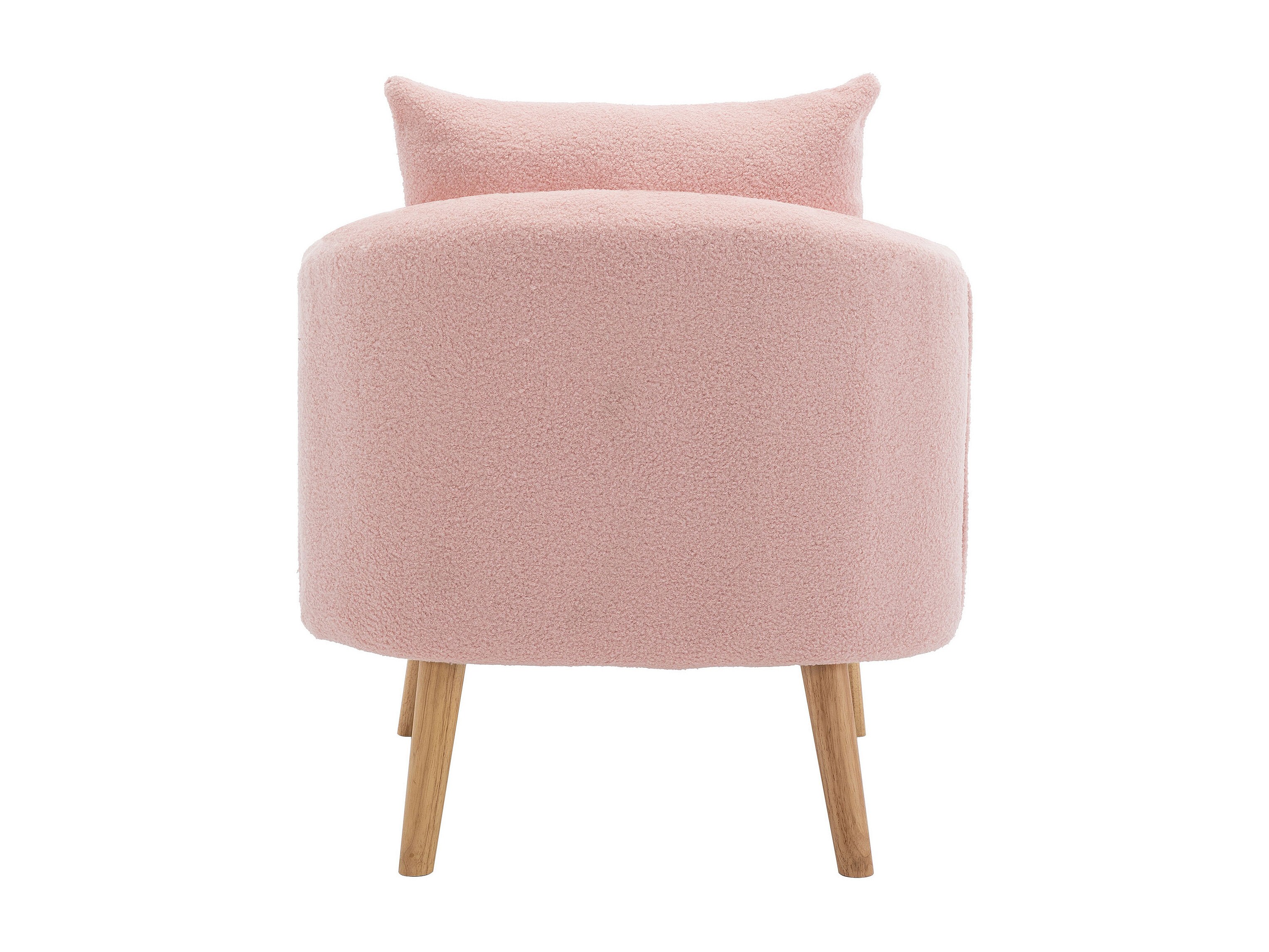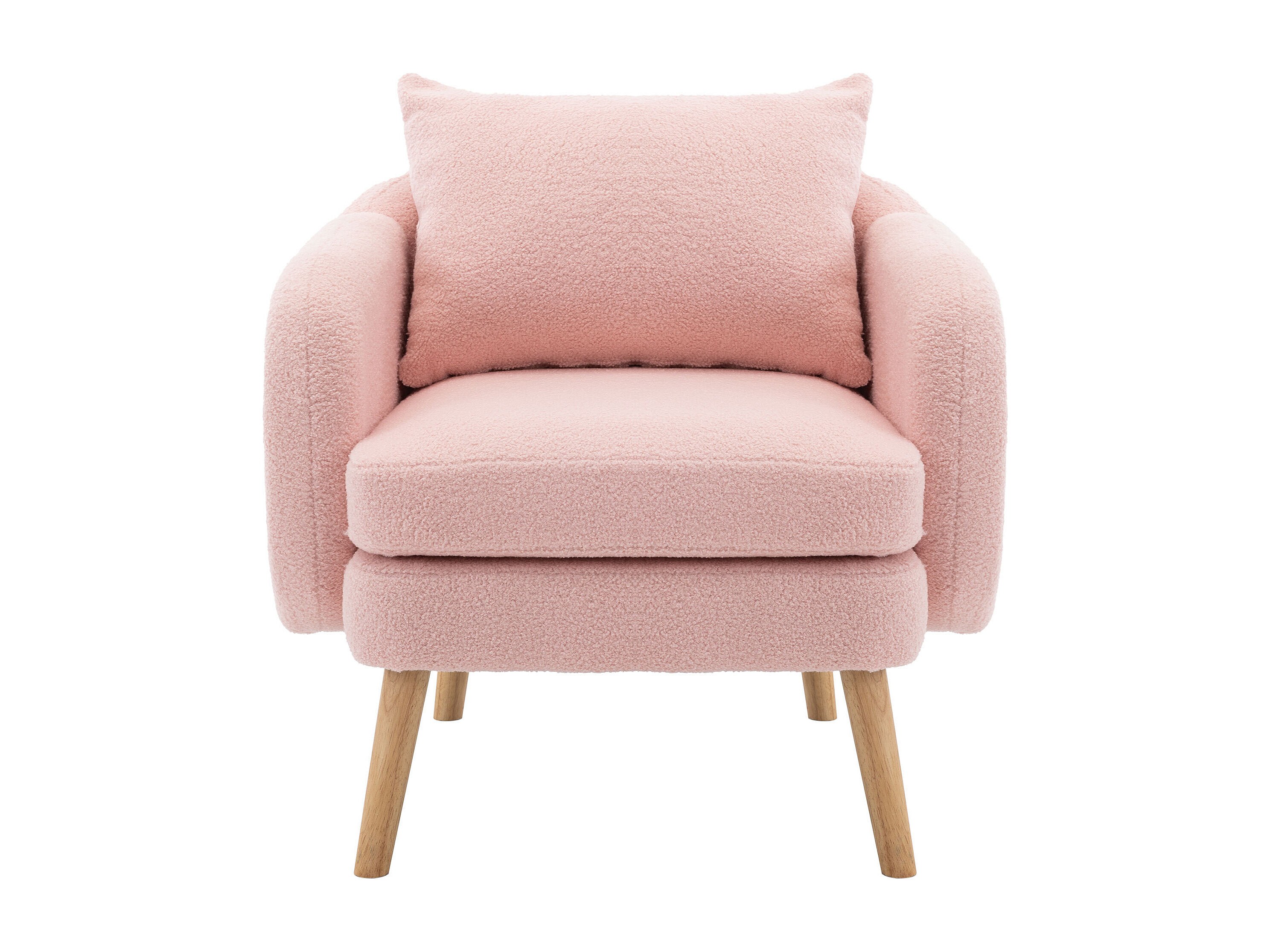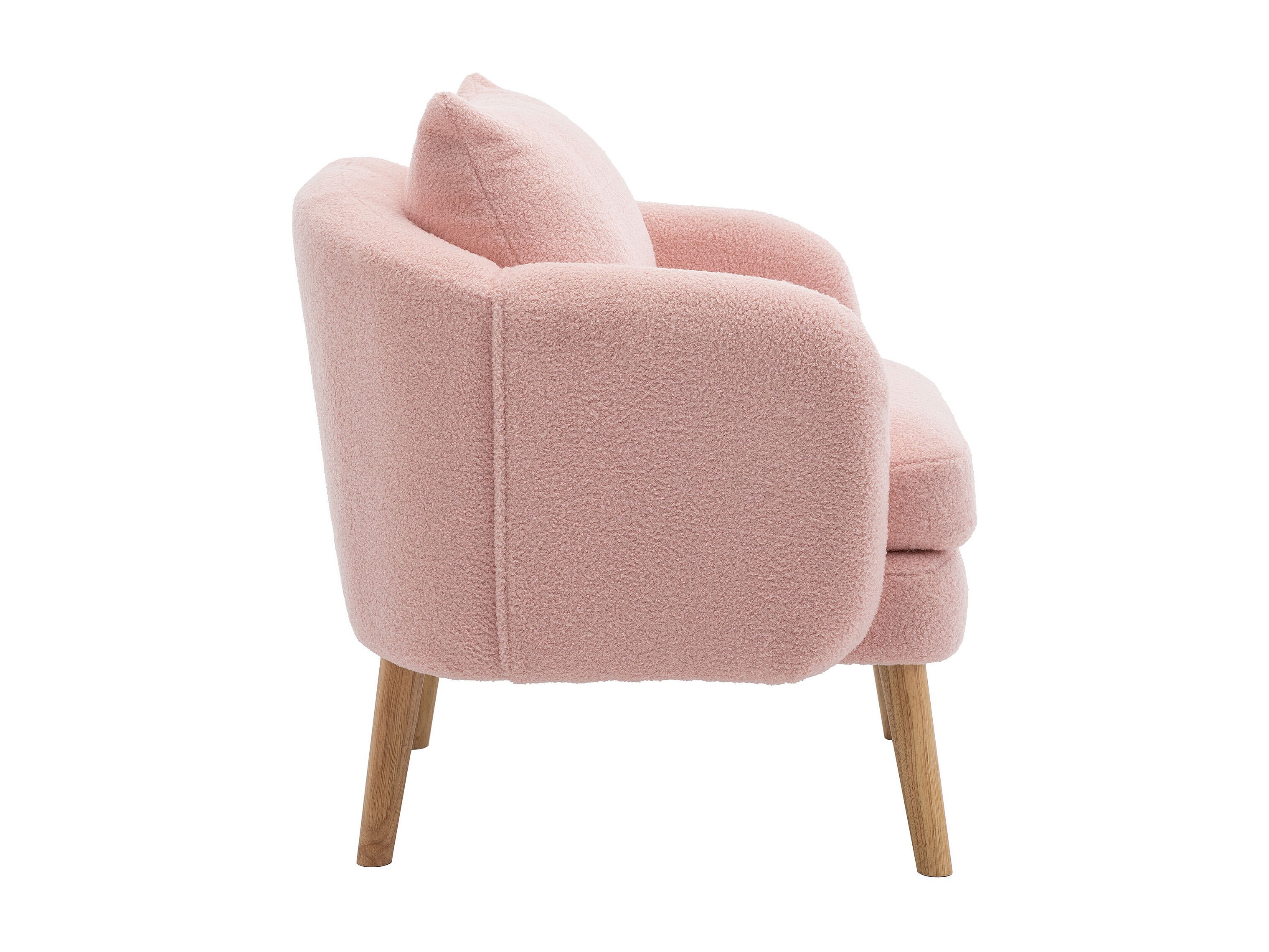 Fauteuil rose - Fauteuil avec assise et accoudoirs épais - pieds et coussins en bois massif - velours teddy
