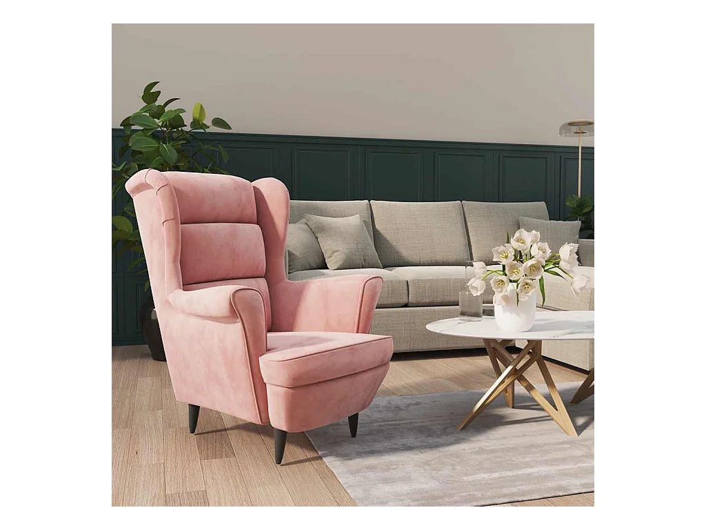 Fauteuil avec coussin rose velours