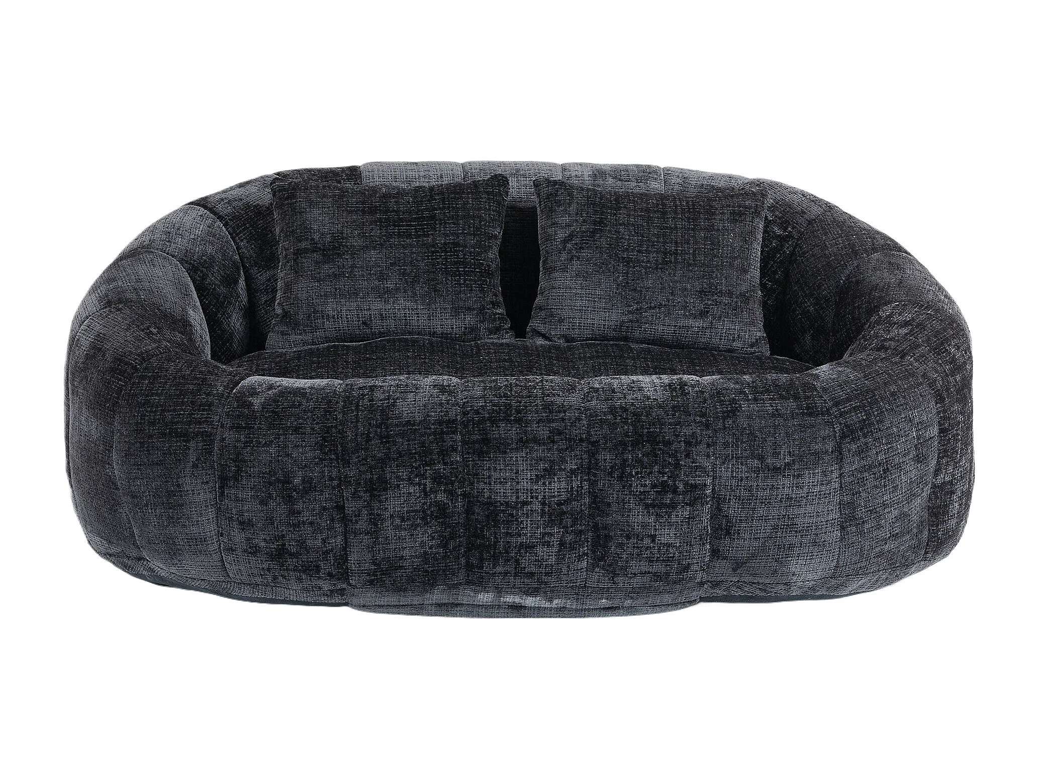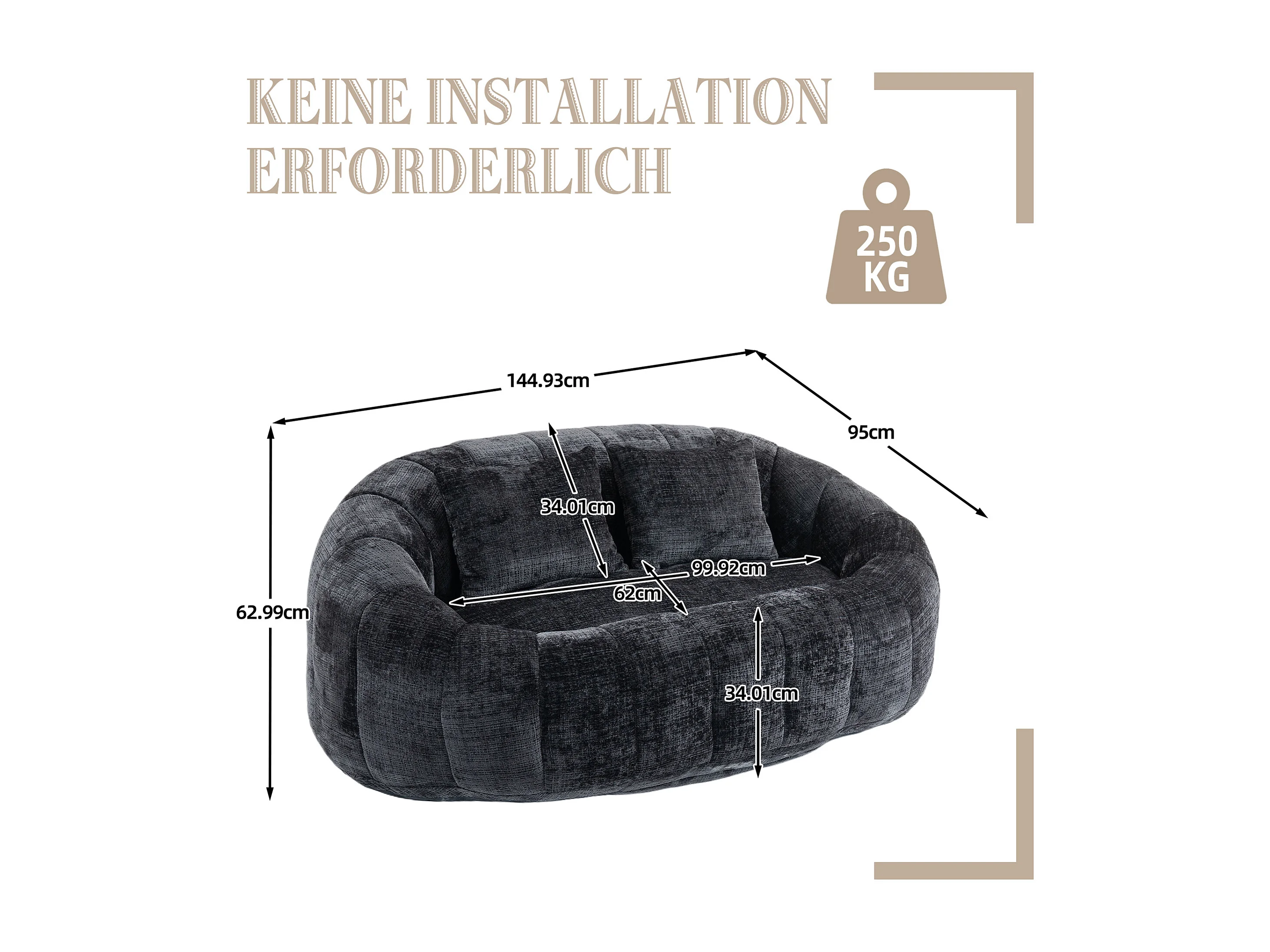 Canapé pouf 2 places noir en chenille – avec deux coussins confortables - fauteuil pouf haut dossier – ultra durable et confortable