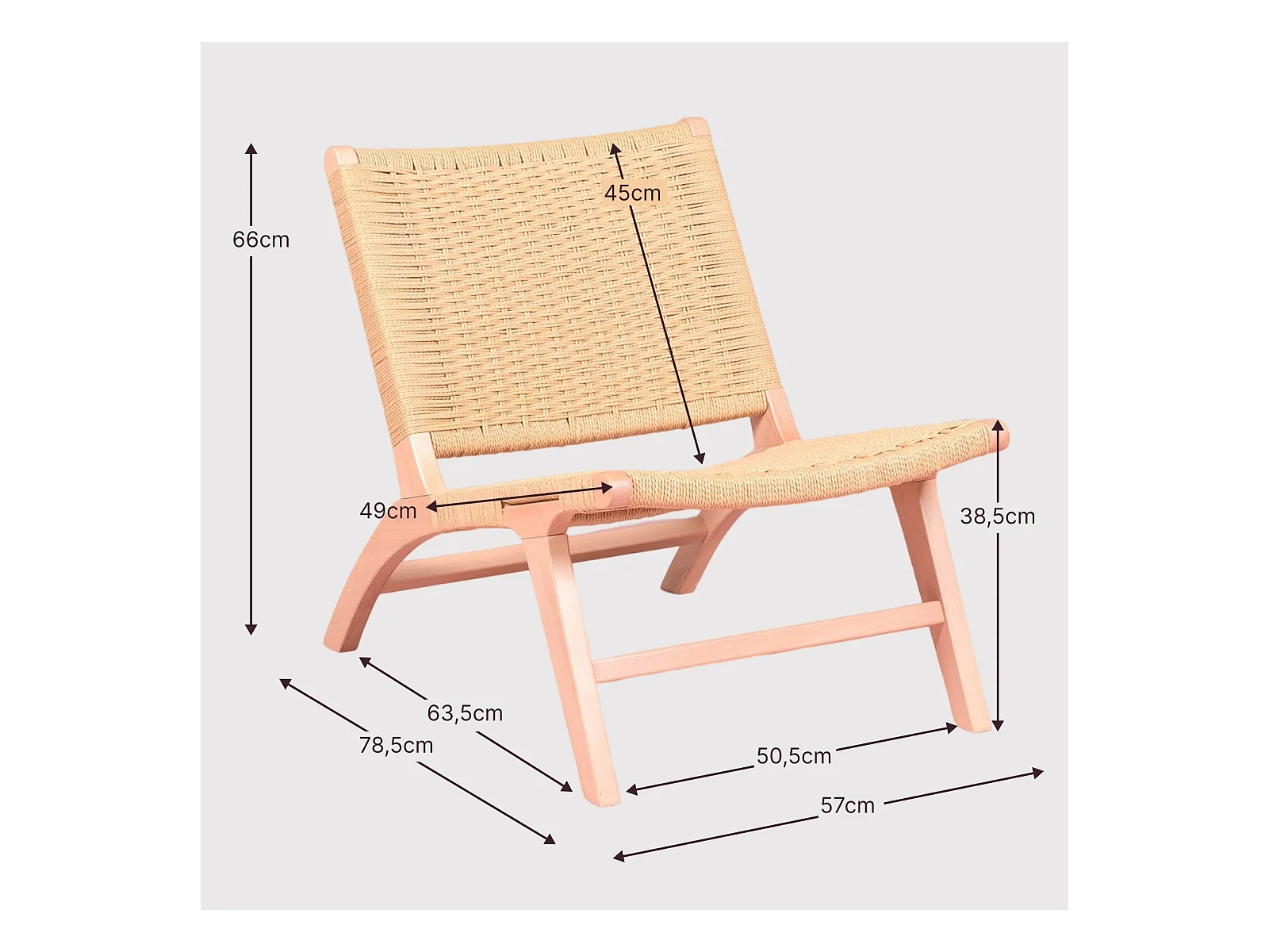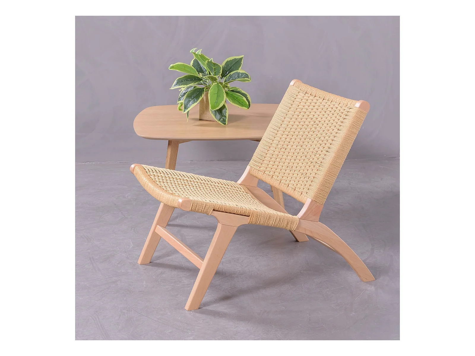 Fauteuil scandinave en bois de hêtre et corde écologique - Liam - Hêtre naturel