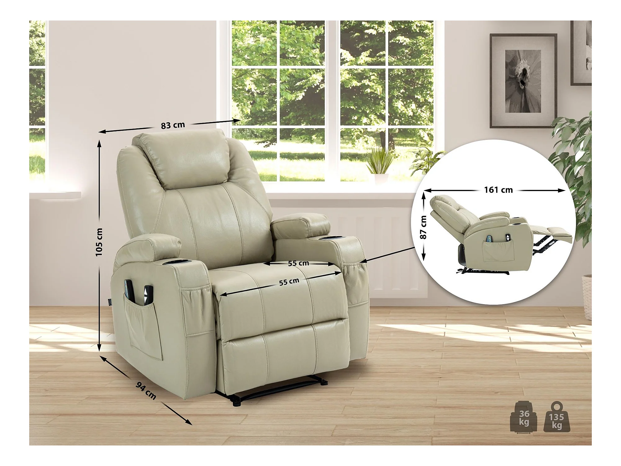 Fauteuil inclinable électrique GLORIE massant Cuir PU Beige clair