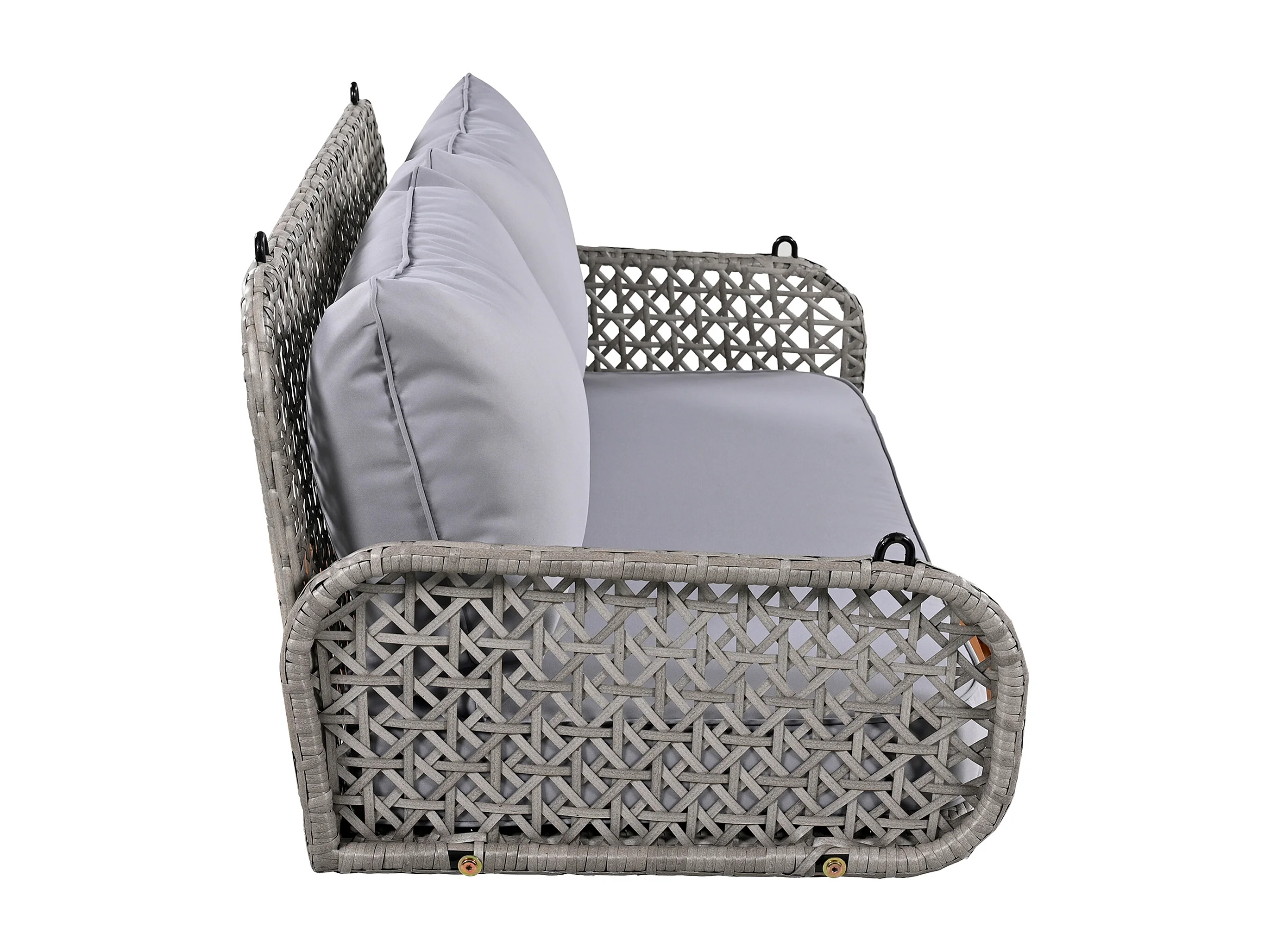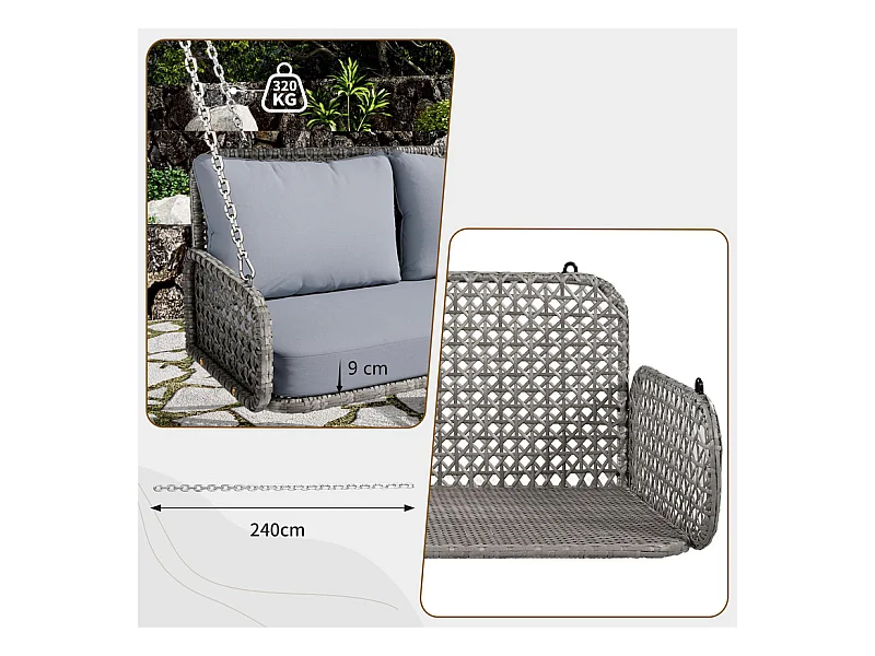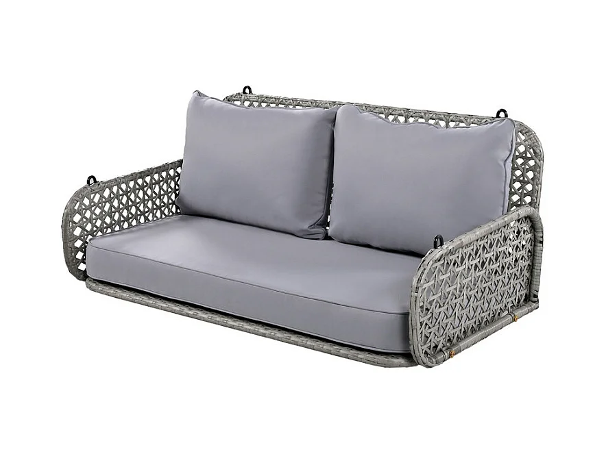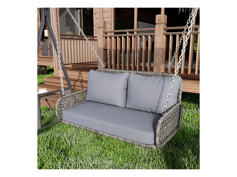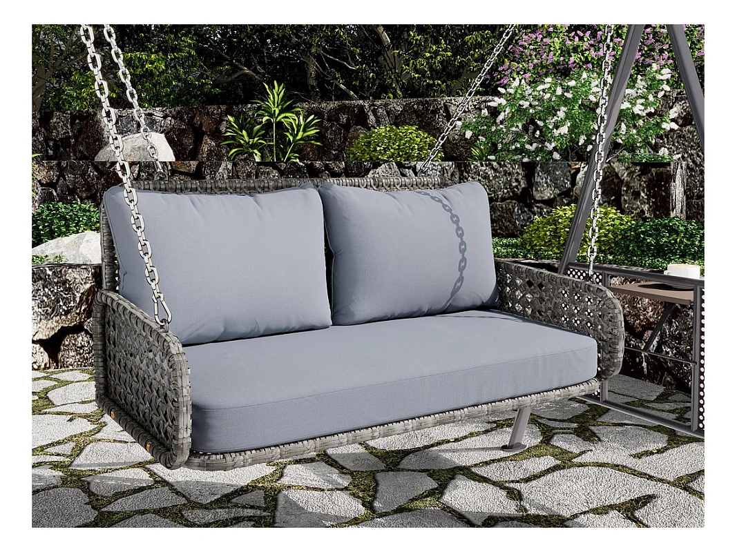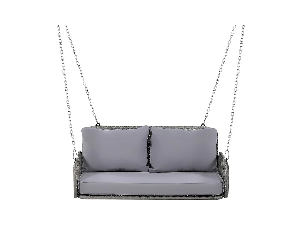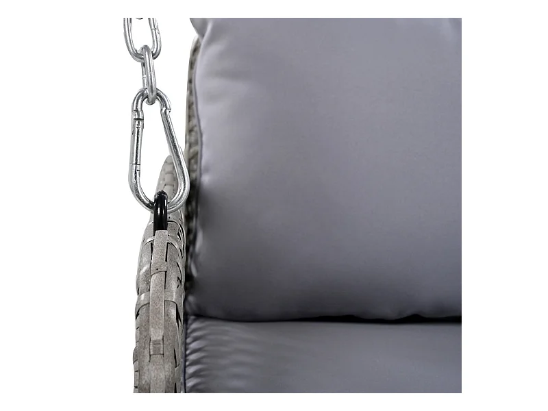 Fauteuil suspendu en PE Rotin - Balancelle de jardin - 2 places - avec coussins - Gris
