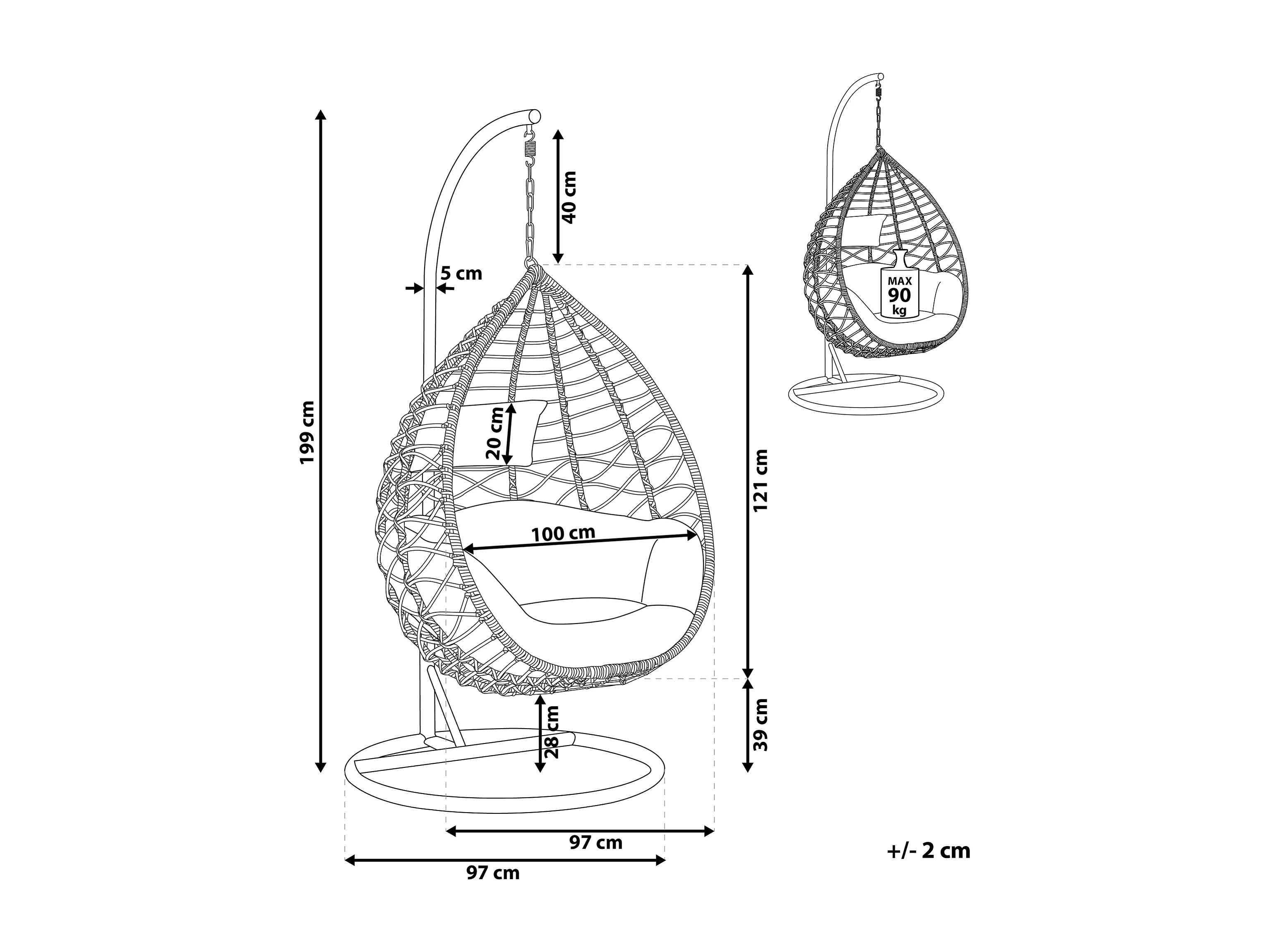 Fauteuil suspendu avec support ARSITA Polyrotin Gris