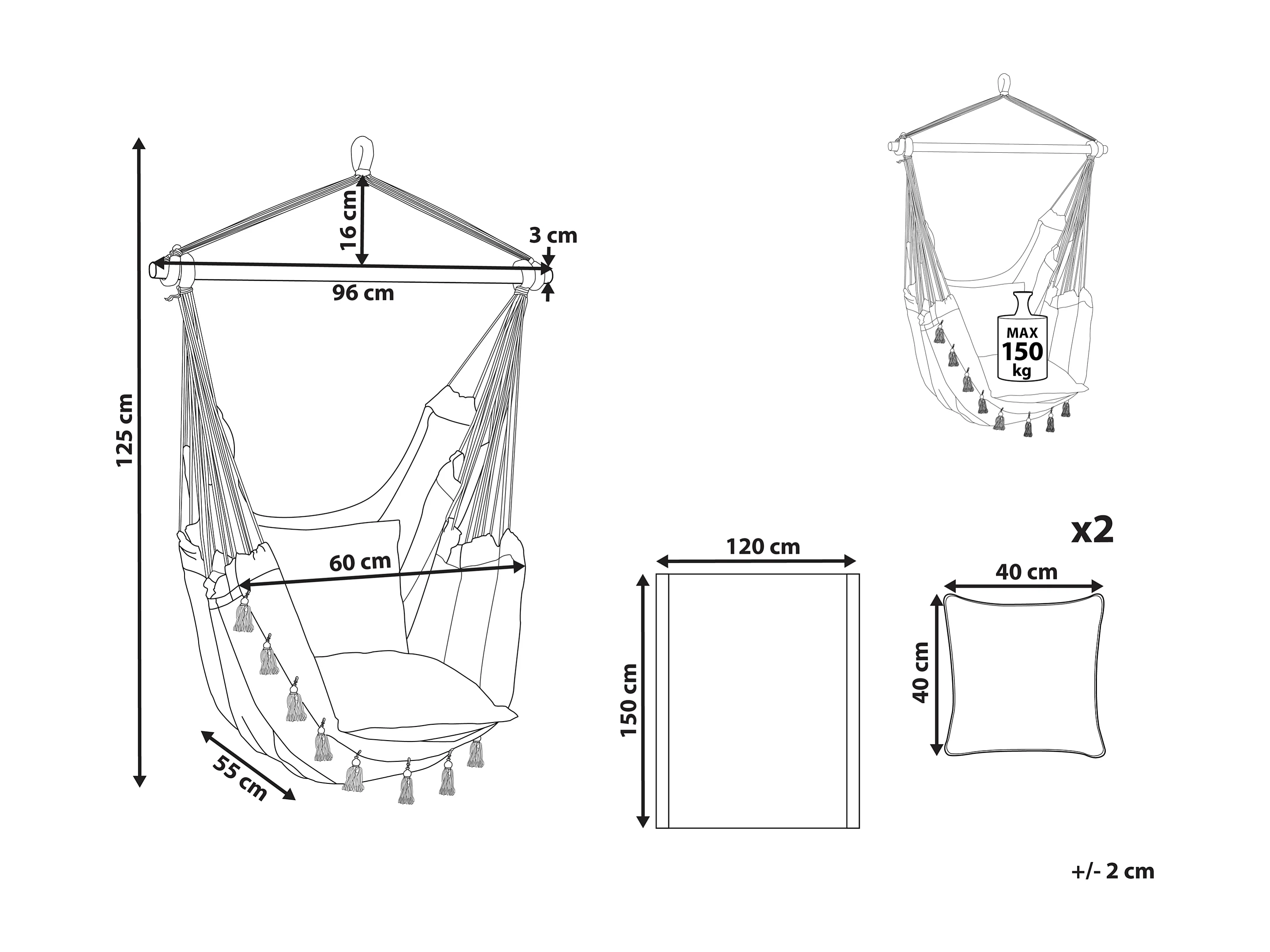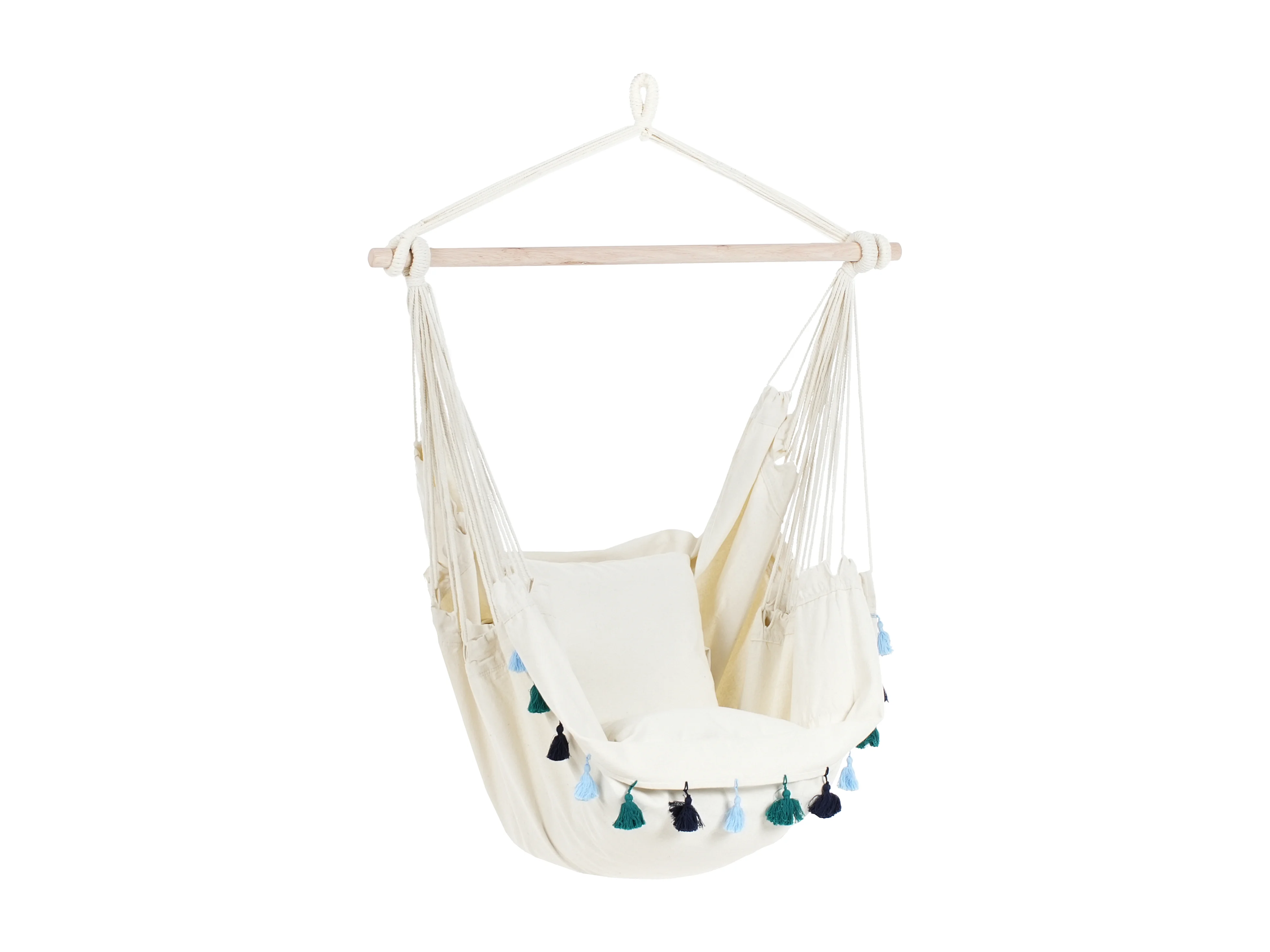 Hamac suspendu en coton beige et bleu VARENA