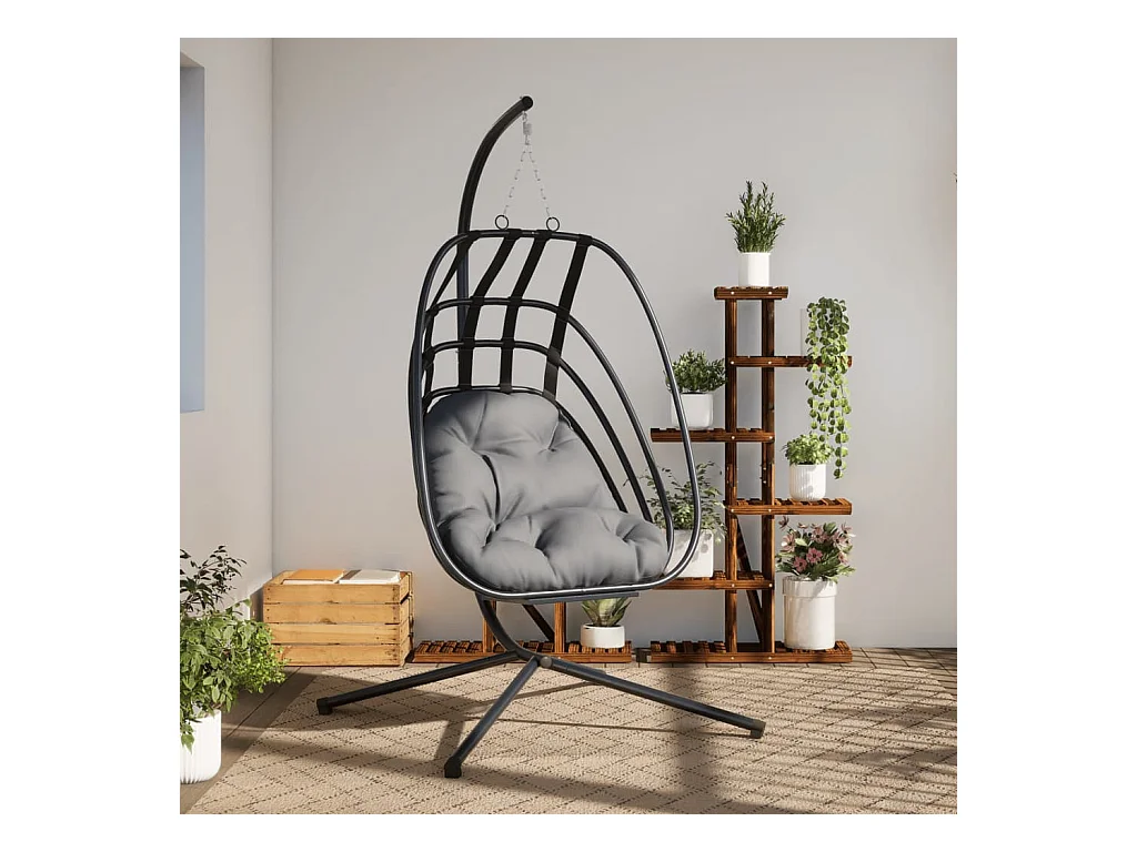 Fauteuil suspendue en forme d'œuf avec support anthracite acier FR529635