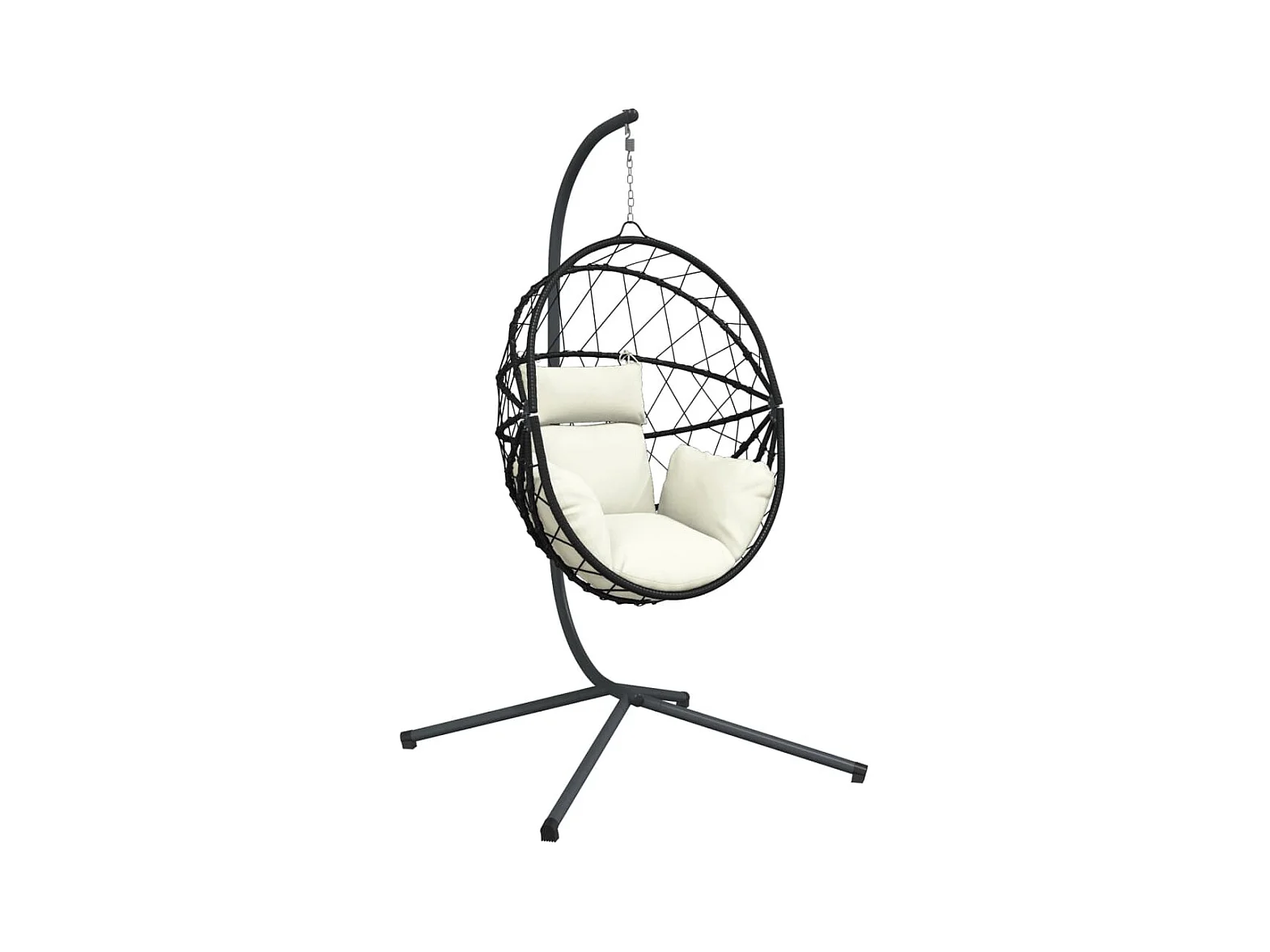 Fauteuil suspendue en forme d'œuf avec coussin blanc crème FR434110