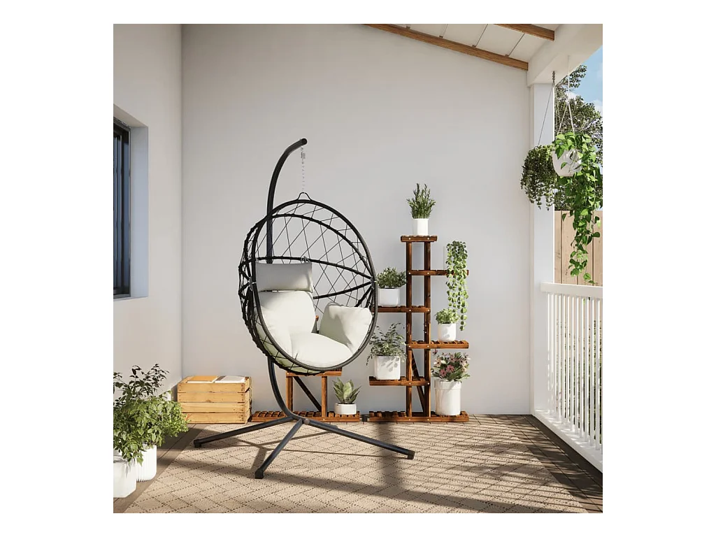 Chaise balançoire de jardin et coussin crème tissu Oxford/acier